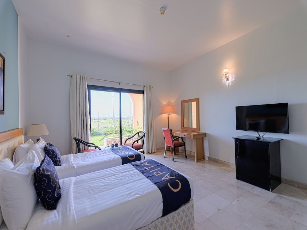 The hotel is empty, very run down, definitely not as pictured and expected. Very old. Swimming pool area is unwelcoming with old furnitures and chairs, no sunbrella, the garden is inexistent, broken, desert, poorly maintained making the seaview actually a very poor bare land view with barriers & fences. The horse stable and bbq area are all very run down so you don’t want to spend time there. There’s no outside bar there, it was closed. The restaurant offers indian food mostly, nothing arabic. If it was a good resort & spa, it was long time ago! I think it is a very good place to visit around, enjoy the beach and go horse riding, but for families to stay there, well be careful with the broken electric cables running around exposed or the broken fences. I wouldn’t bring my child there & not for couple romantic gateway.... not a nice place. Repair this hotel! It has potential to be gorgeous again. But provide some efforts to maintain it! And repair. Right now, i wouldn’t recommend or go back anytime soon.