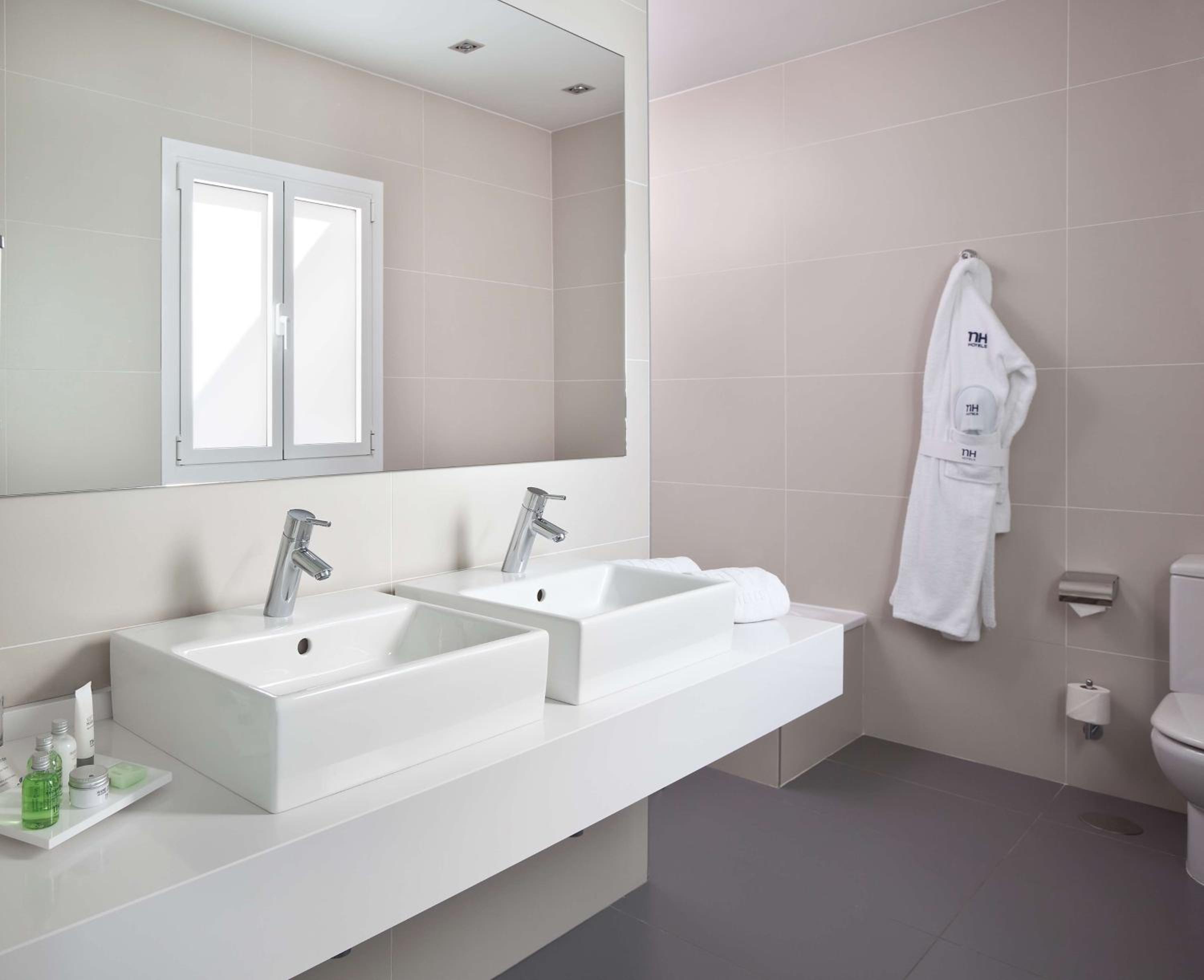 The bright and soundproof rooms at NH Madrid Atocha are equipped with modern amenities such as air conditioning, a 40-inch TV, pillow menu, safe, and minibar. The private bathrooms feature a rain-effect shower, toiletries, and a hairdryer, ensuring a comfortable stay for guests.