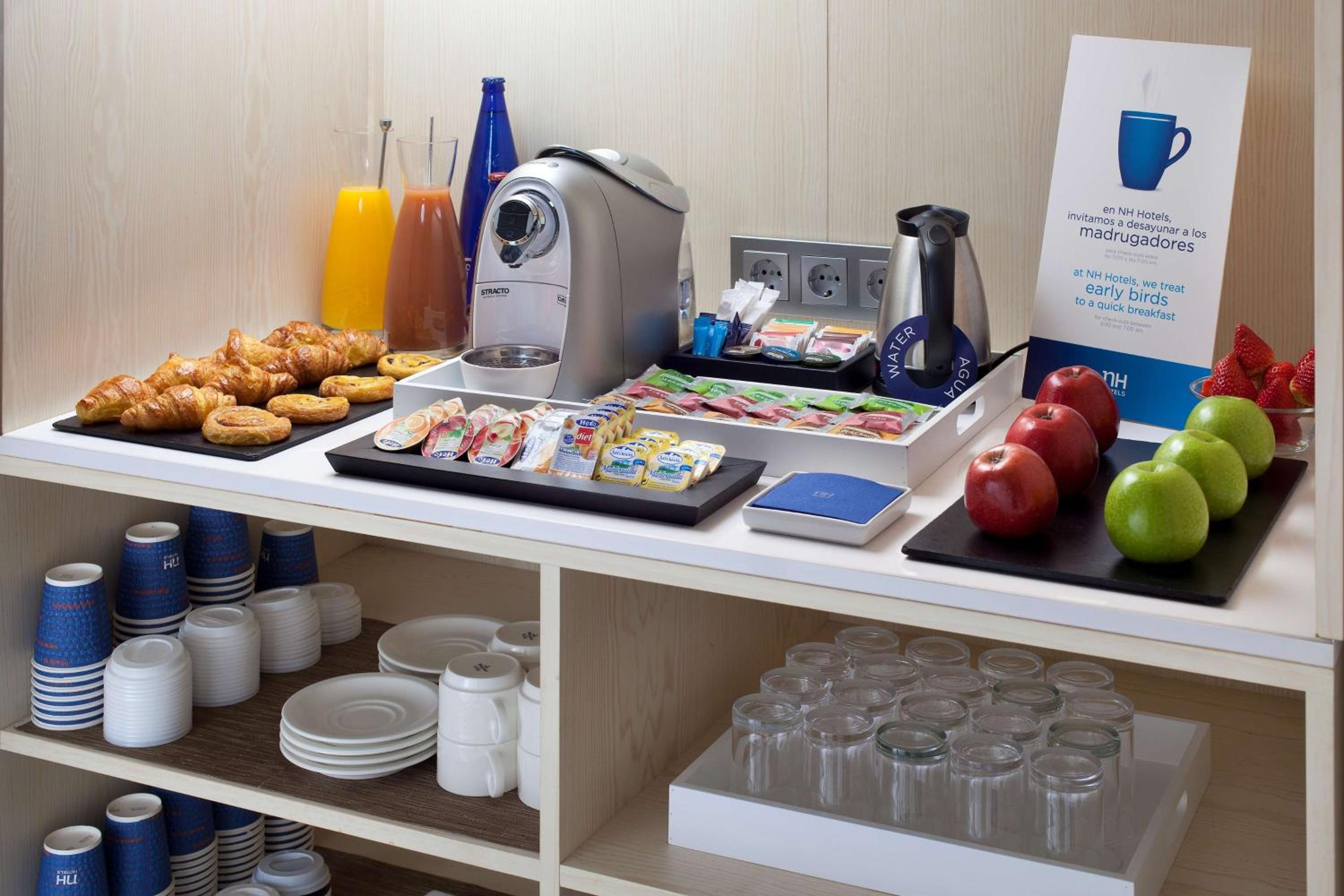 Dulces y cafe antes de las 7 al lado de recepcion.