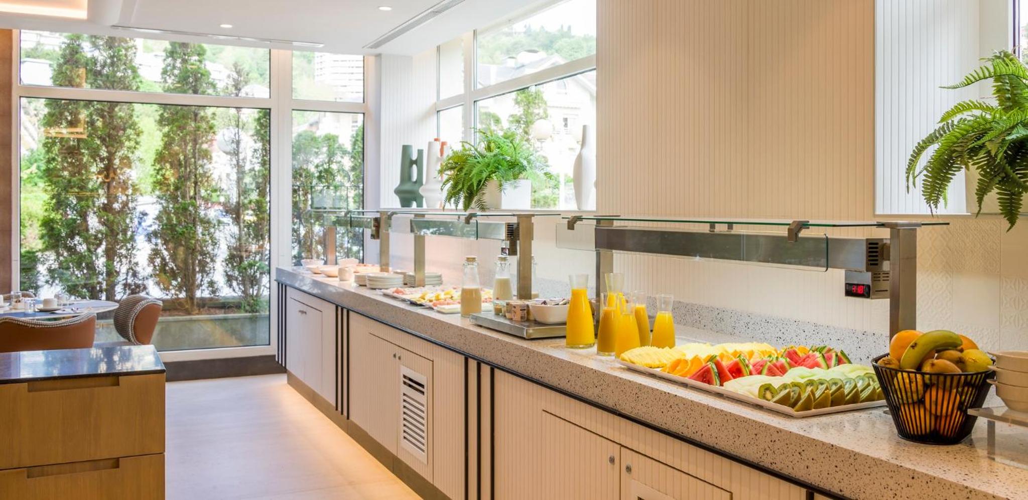 El buffet del desayuno se puede mejorar con más variedad de fruta.