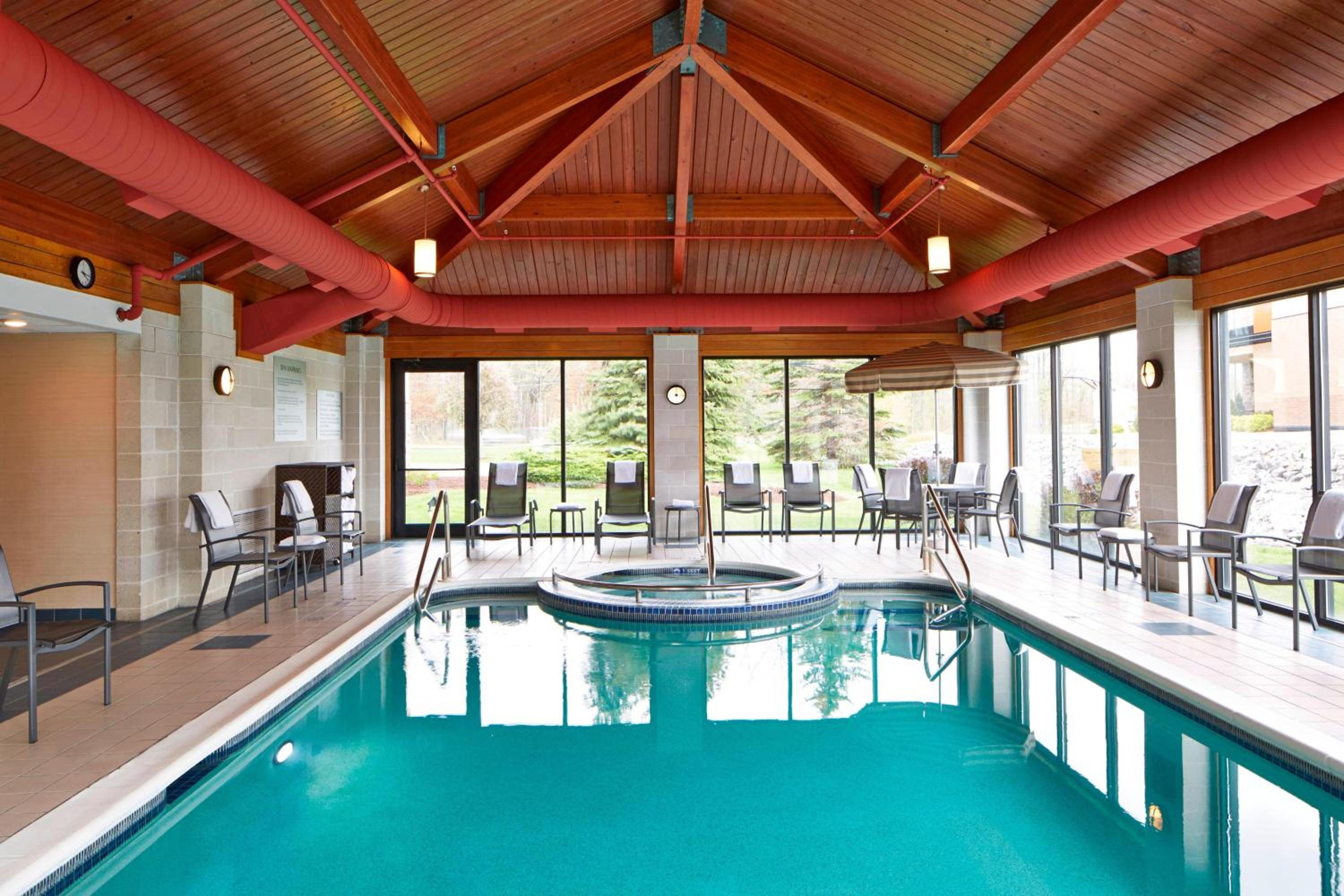 Indoor pool, room was quiet and clean, dining and shopping options in walking distance.
