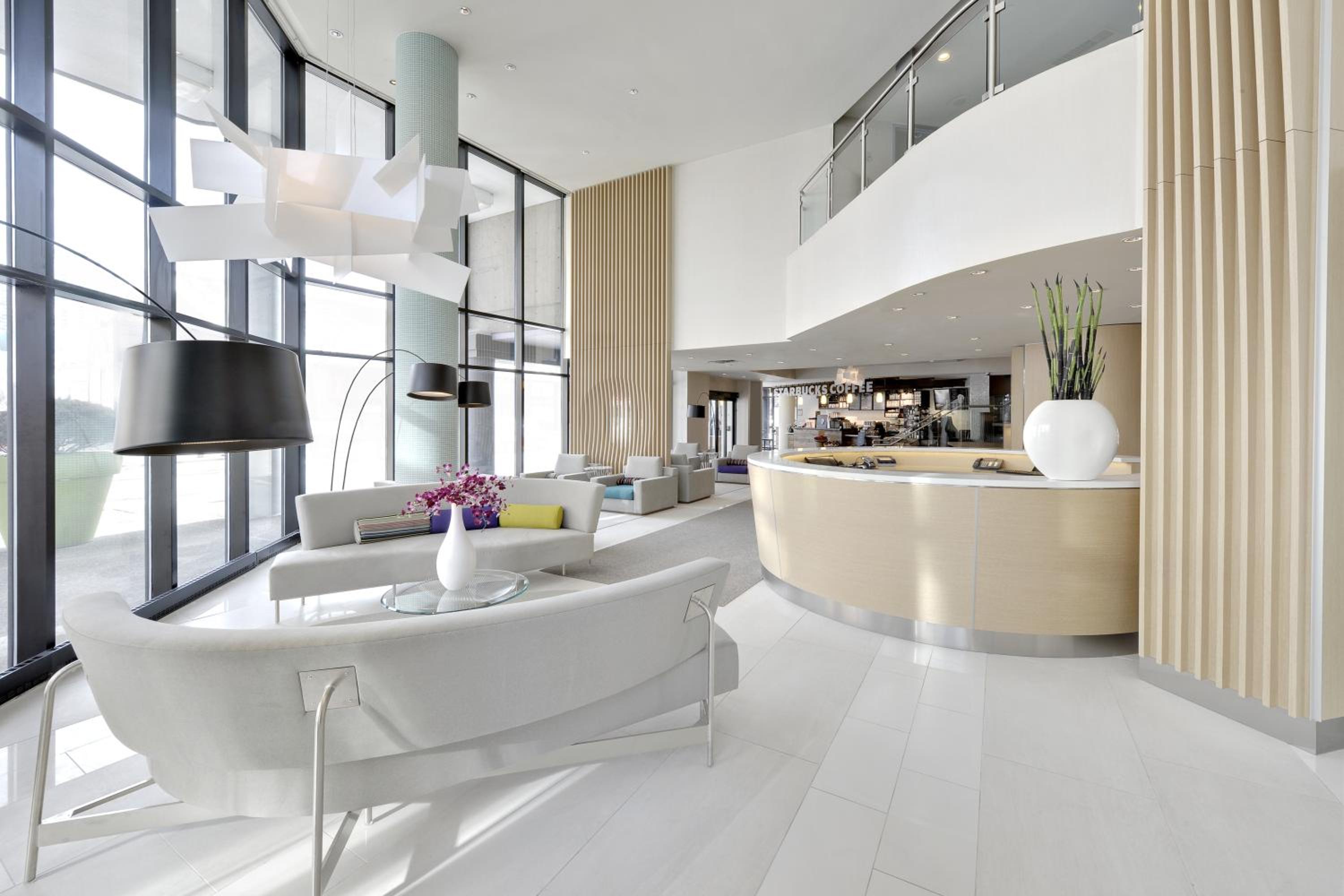 Modern decor. Spacious room. Comfortable bed. Good location. Convenient coffee bar in lobby.
