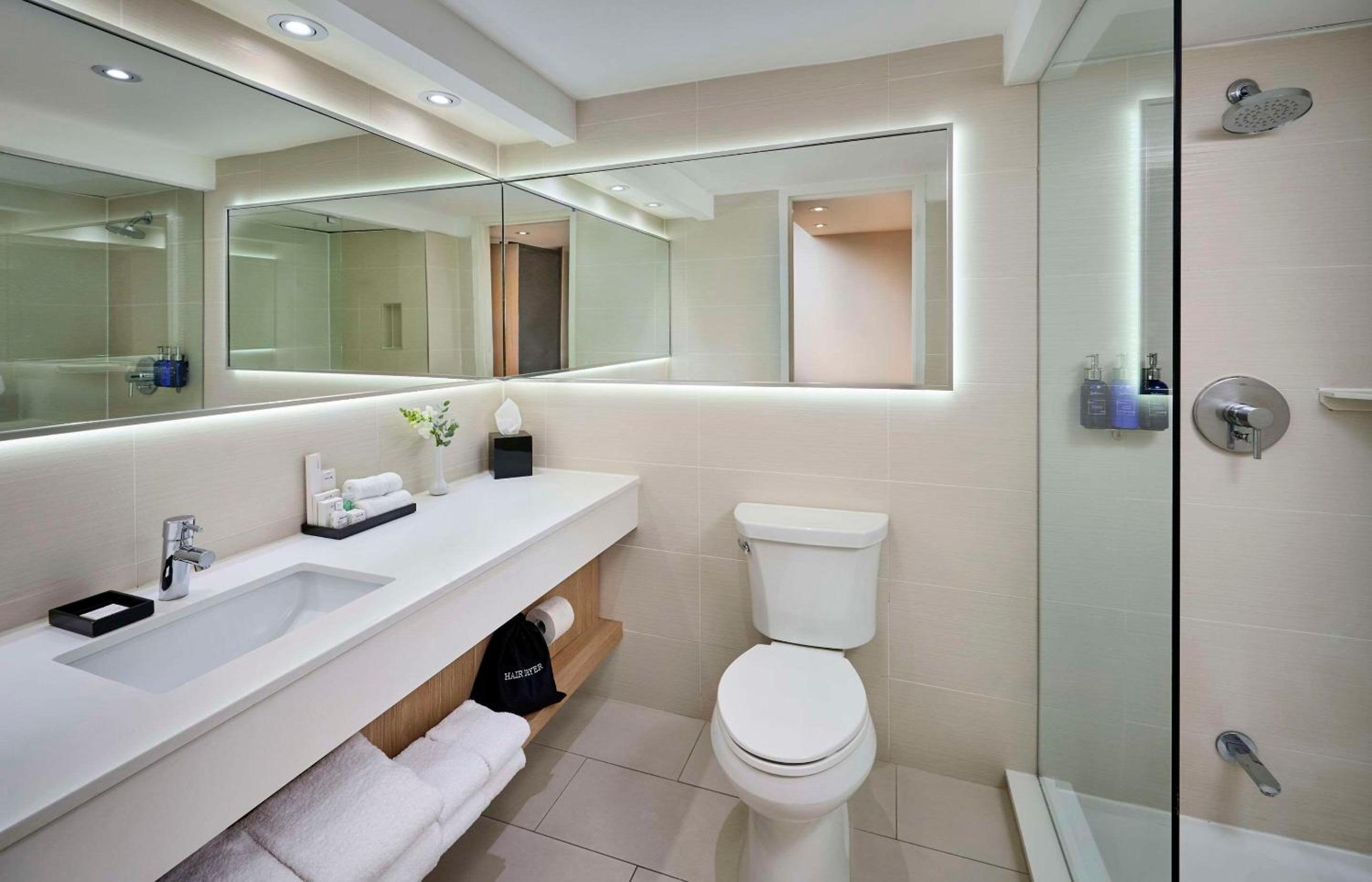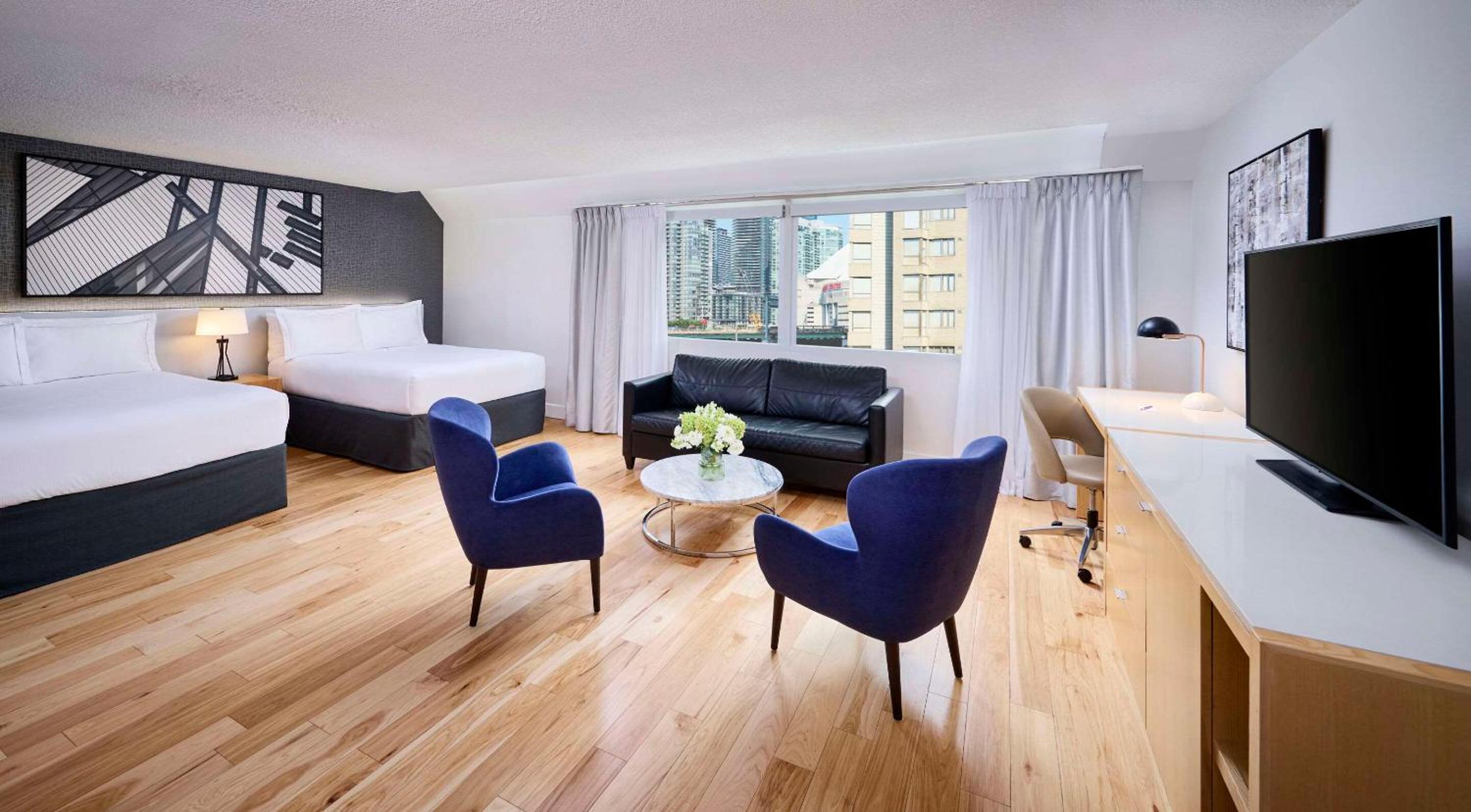Relax in well-appointed guest rooms featuring a mini-fridge, coffee maker, and modern amenities. Take advantage of the fitness centre and take in breathtaking views of the pool, harbour, or city skyline.