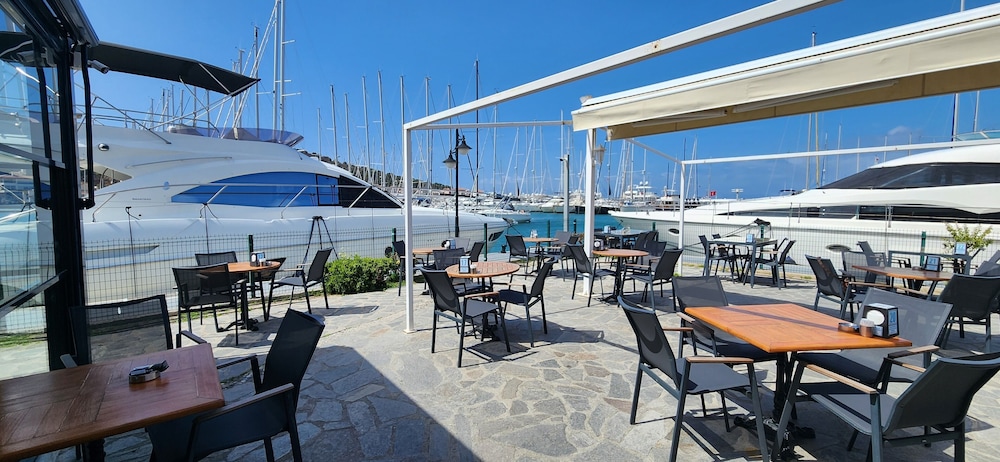 Das Frühstück wird im Yachthafen am Meer serviert