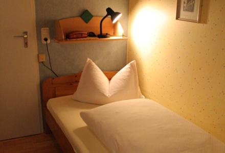 In meinem Zimmer befand sich kein Fenster. Tageslicht und Belüftung waren nur über das Fenster im dahinter liegenden Badezimmer möglich. Das mag bei einem Einzelzimmer gerade noch gehen, aber schön ist es nicht, wenn man ständig das WC im Blickfeld hat. Der Heizkörper war nicht wie üblich unten, sondern an der oberen Hälfte der Wand angebracht.
