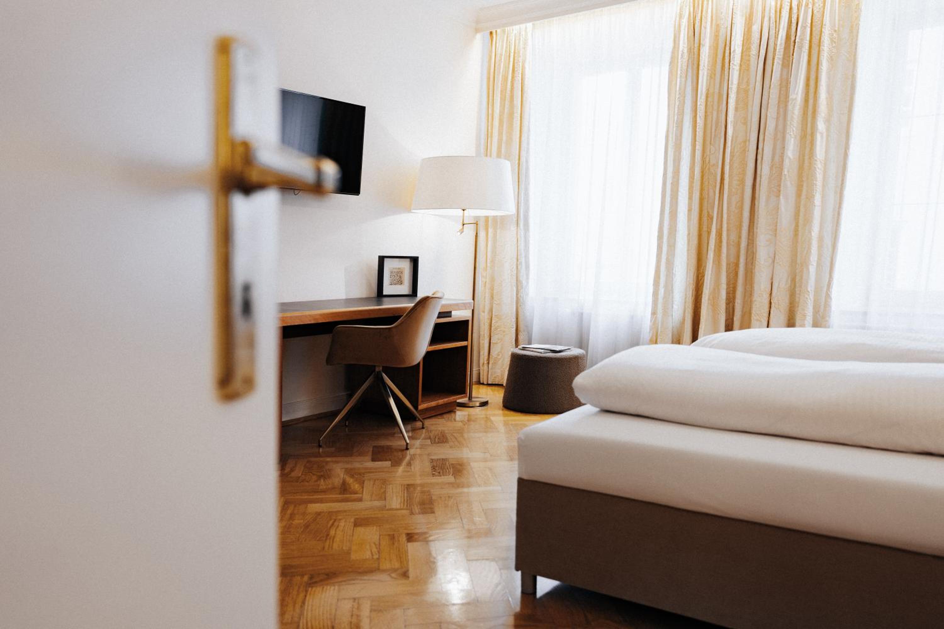 Individually Designed Rooms: Hotel Fletzinger offers tastefully furnished rooms with modern amenities including a flat-screen TV, telephone, and safe.