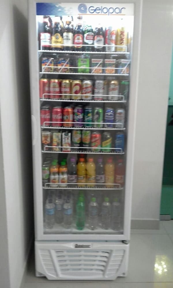 Bem simples, no quarto só tinha um sabonete, não tinha shampoo, funcionários educados atendimento bom, o quarto tinha uma janela que tinha vista para um depósito.