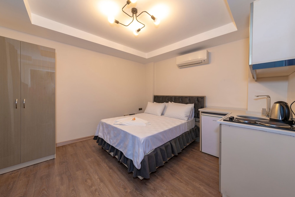 Like the reviewer above, we were also denied entry and sent to another apartment after contacting Expedia about the issue (which incurred us a £72 bill from abroad). The Taxim First owner had to help us out because we got Expedia involved, had we have not then we would be stranded with luggage and young kids after a long travel. The owner despite us proving from bank statement that the funds had been taken for our stay, strongly denied payment. We were then sent to another apartment, not luxurious or decent at all with a lot of fungi, mould, no kitchen equipment, broken door handles, no bathroom lock, flying ants in whole property. It was a huge downgrade. We are really upset although the new owner who located us was a very kind man, but it seemed this room needed repairs and was not fit to be rented out. Even the door of this room was different. It was the last room on the 3rd floor, a very long walk up. The lift would usually be out of service. Basically, we had it quite bad with Taxim First Apart. Please do be careful. I would not recommend booking this place at all, it will ruin your trip. You will not receive what is displayed and be wary that you make sure you know whether they have taken payment or not.