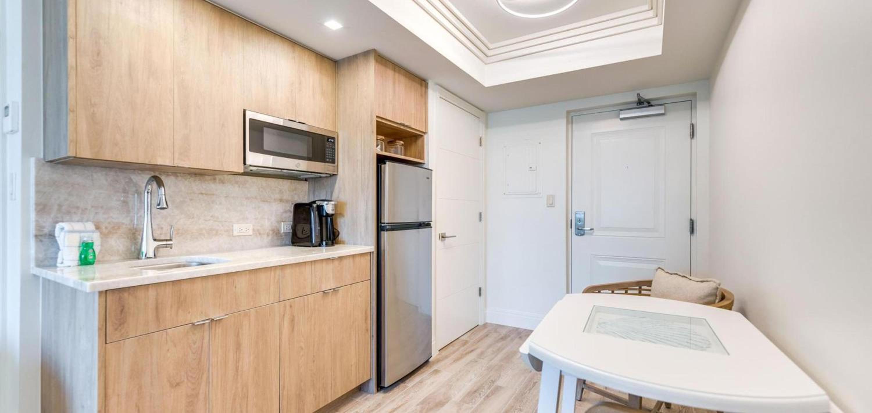 Beautiful beach front location. Beds were very comfortable our unit was brand new. Full-size fridges snd kitchen gear..