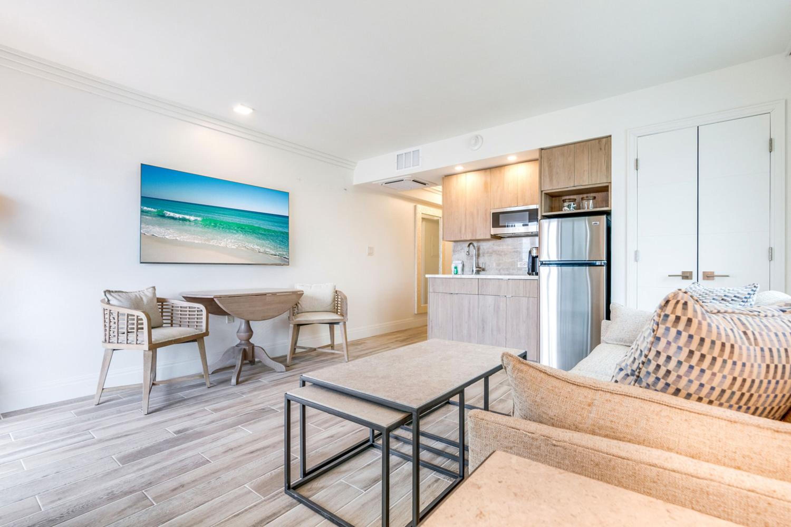 We liked the place for so many reasons- Great location, nice pool and pool side bar, very nice beach with easy access from the hotel, on-site bikes, and just over all was great. There were other guests but it never felt crowded, the room was recently renovated and looked very cute, we used the kitchen and the laundry in the unit which were great to have too. The staff was very polite and efficient. The location relative to restaurants and other activitis on the island is terrific too.