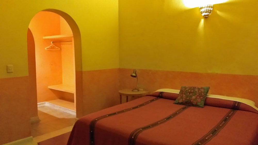 Cadre typiquement mexicain personnel sympa attention restau et petit dej vegan juste une petite critique chambre 5 ampoules nues aux murs !!!