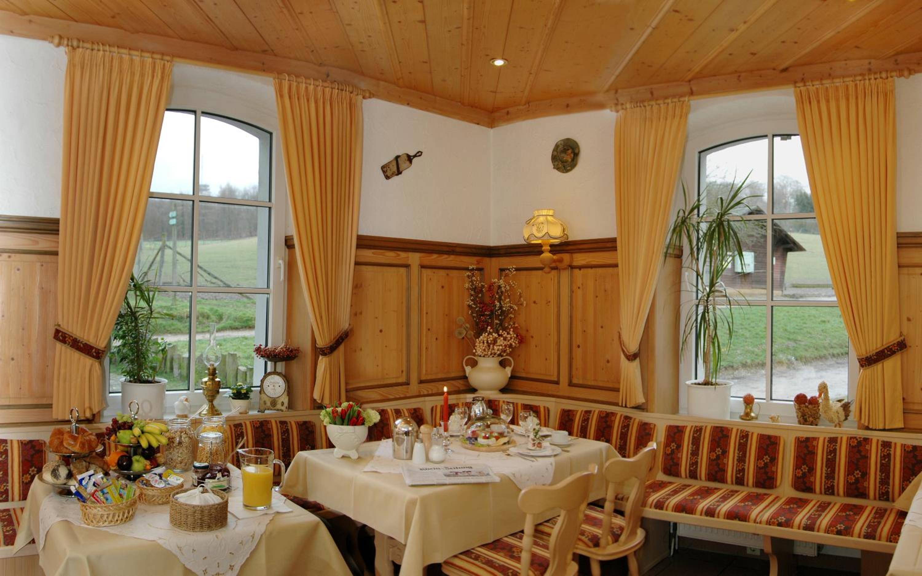 Frühstück sehr langweilig. Kein Buffet, Frühstück gab es pro Tisch. Jeden Morgen gab es gleiche Wurst und Käse. Packung auf und muss für 5x reichen. Für uns nicht einmal Standard. Restaurant war in Ordnung. Auf Wild spezialisiert. Waren nur am ersten Abend essen.