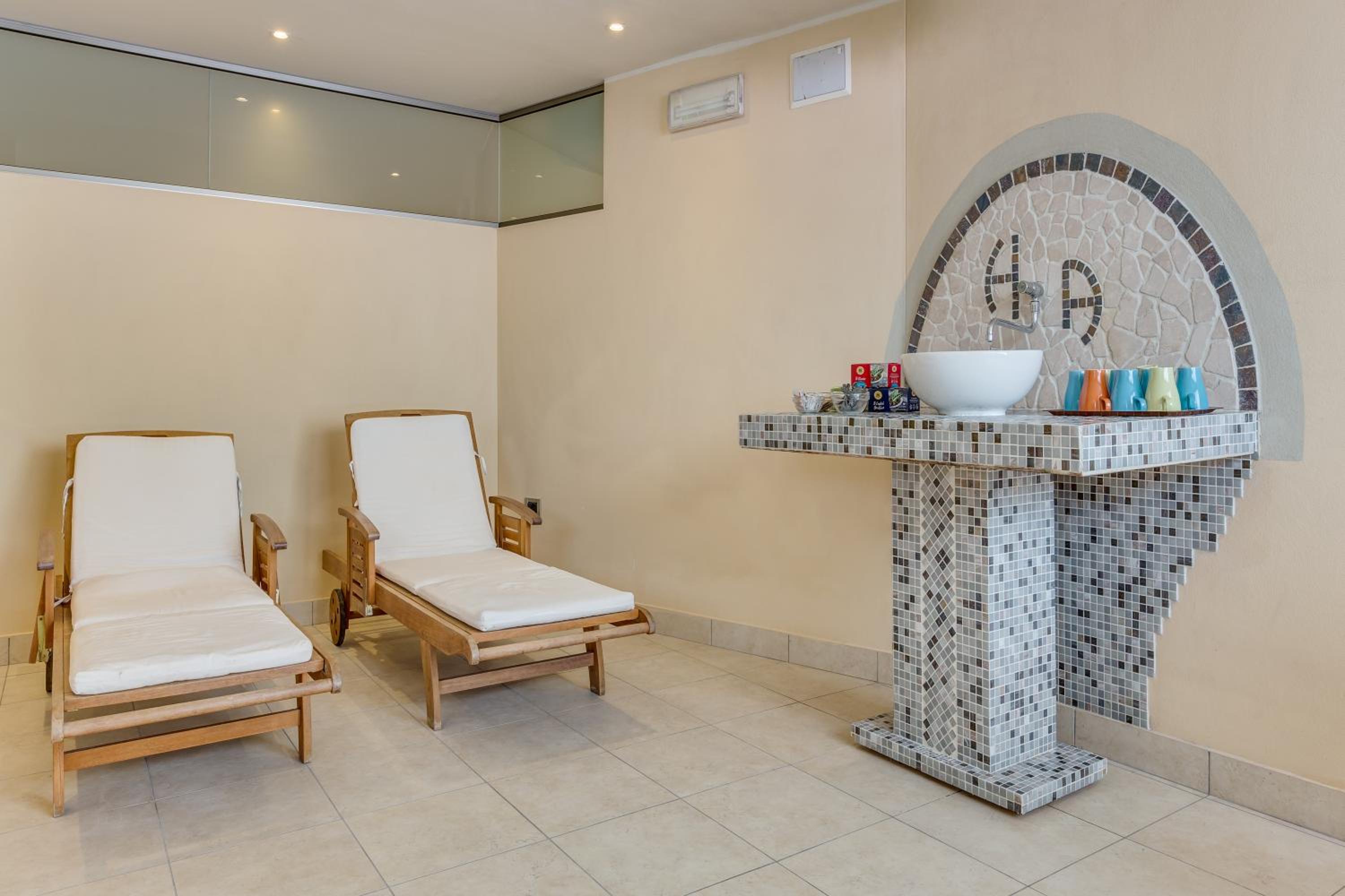 Indulge in the paid wellness area with sauna, Turkish bath, and hot tub.