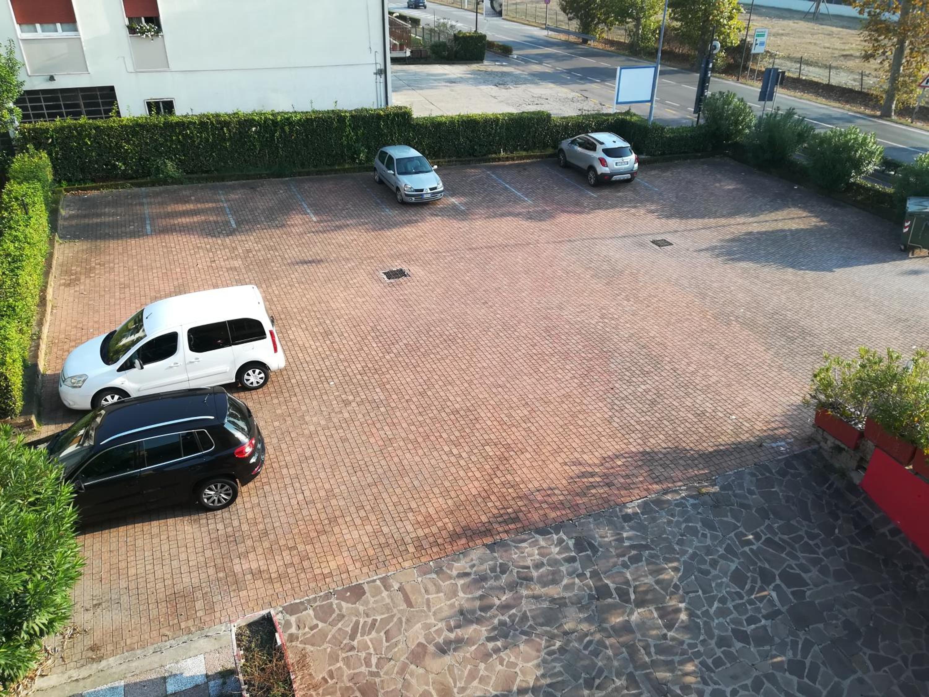 Posteggio riservato adiacente alla struttura e uno libero in faccia ad essa.