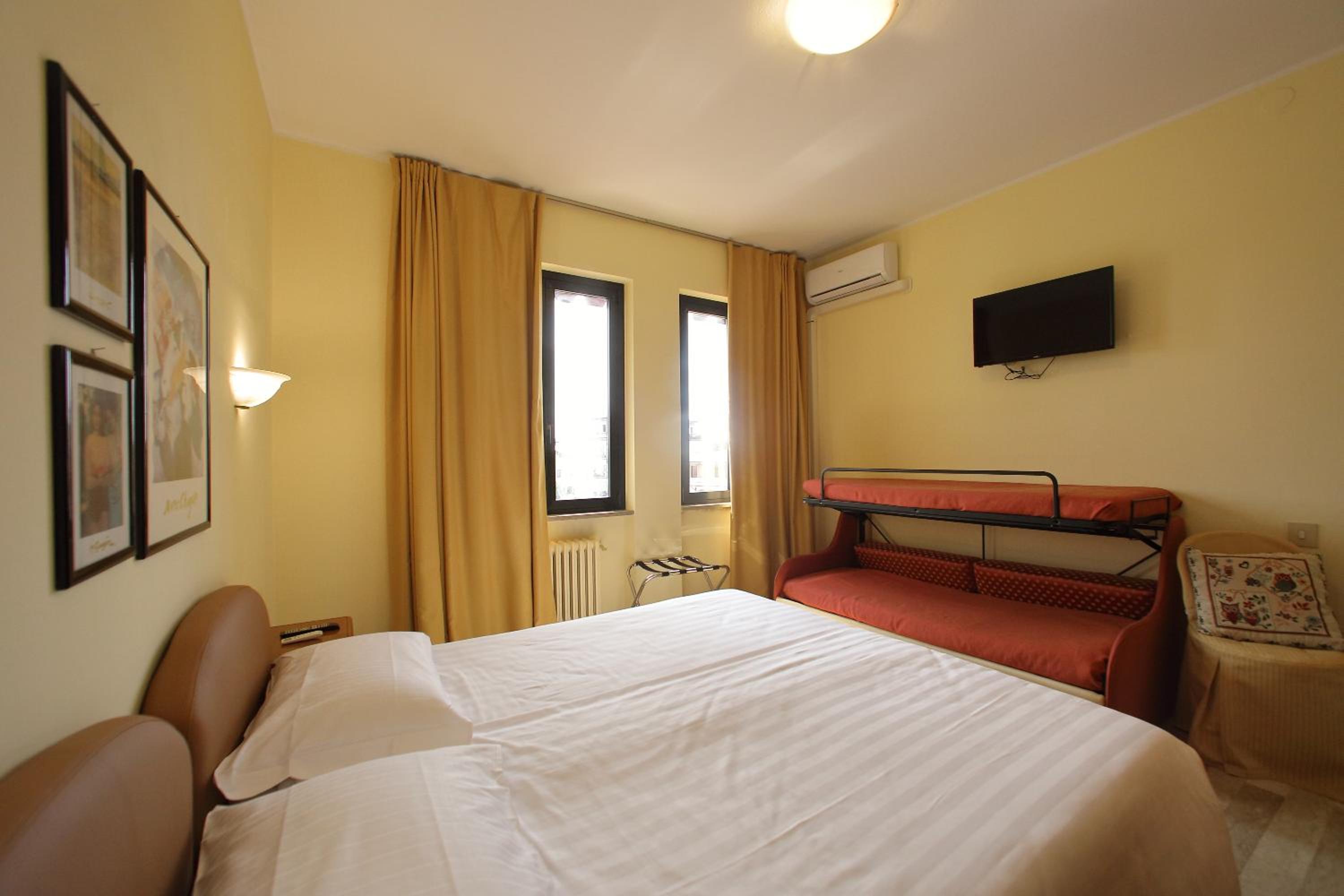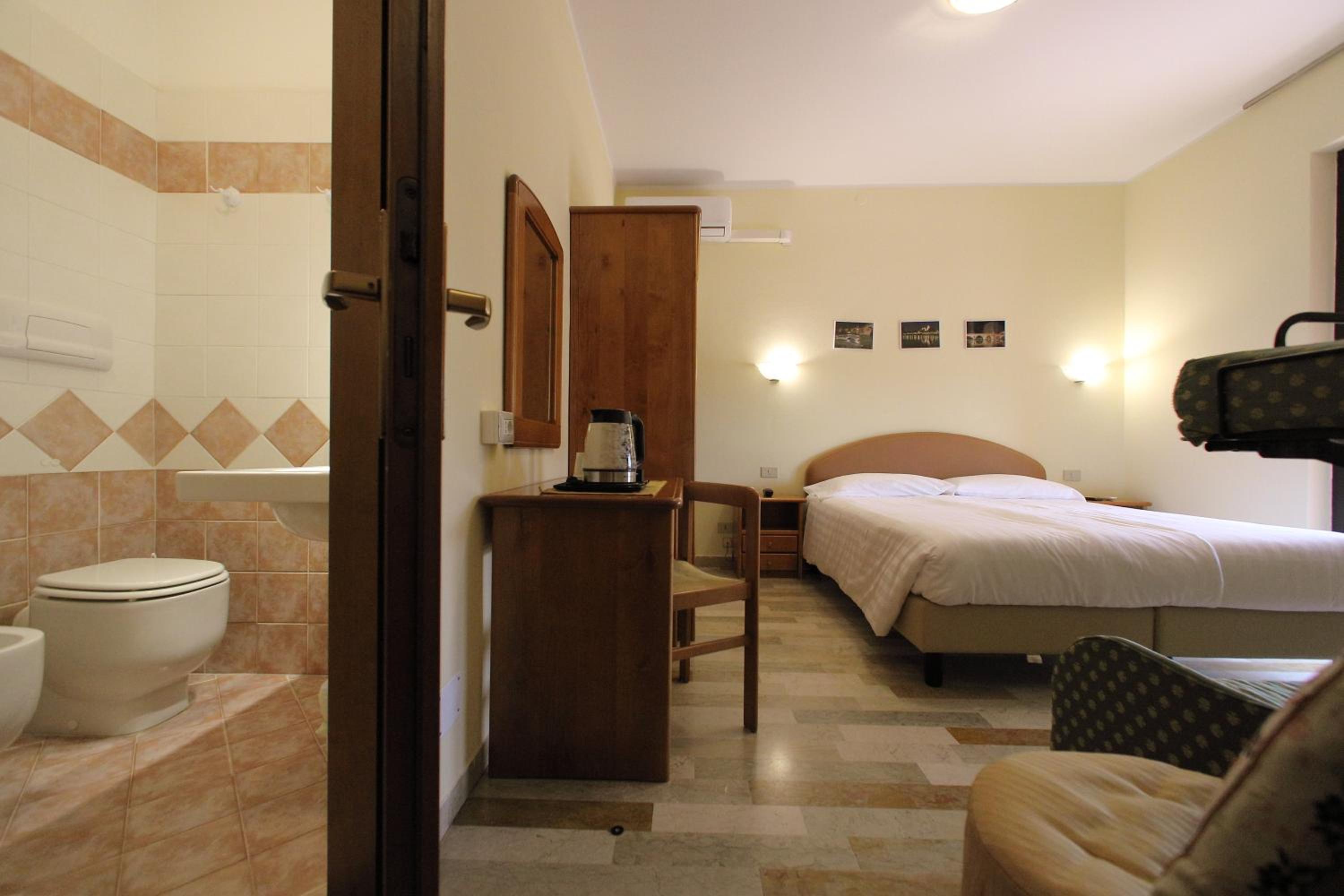Hotel tranquillo e ben posizionato. Parcheggio per auto. Stanze pulitissime, insonorizzato. La signora veramente carina e gentile.