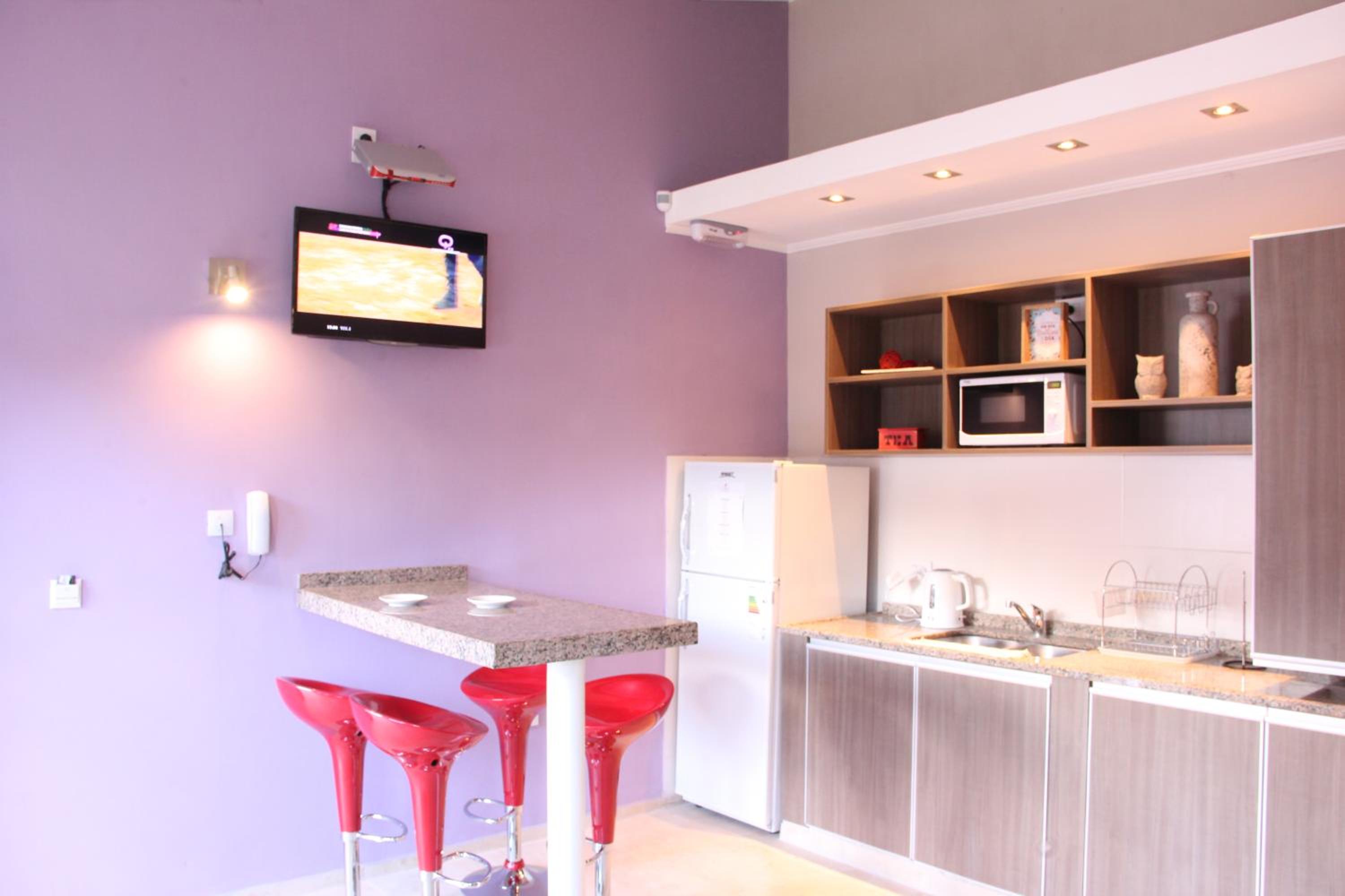 Each unit is equipped with modern amenities like air conditioning, flat-screen TV, and a safety deposit box. Cook your own meals in the kitchenette featuring a microwave, kettle, and fridge for added convenience.