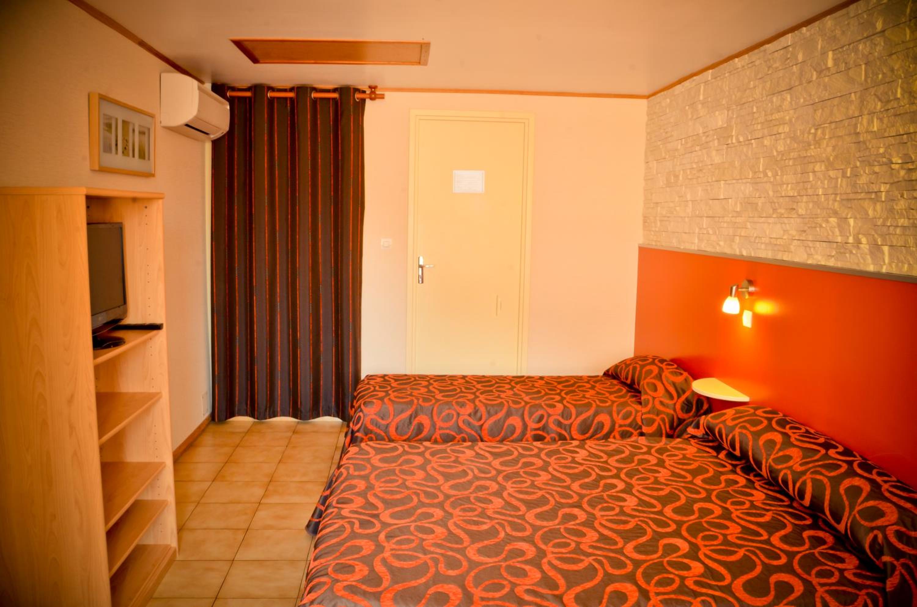 Chambre 22 mal insonorisée, odeur d'humidité, pas de réfrigérateur ni de bouilloire ou machine à café, pas de prise près du lit pour brancher les portables, équipement salle de bain vieillissant (tablette mal fixée sous le mirroir), pas de patère pour les vêtements ni dans la chambre ni dans la S2B, 1 seule chaise pour 2, interdiction formelle et écrite de manger dans la chambre(?)...parking ouvert, non sécurisé ni surveillé. Porte de chambre avec un seul point de fermeture. Pas de personnel après 21h. Seulement un numéro de téléphone.