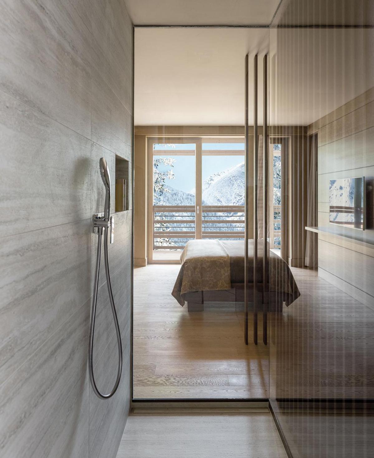 Lefay Resort & SPA Dolomiti offers a blend of elegance and comfort with its garden, bar, and spacious rooms equipped with modern facilities like air conditioning, TV, and a private bathroom.