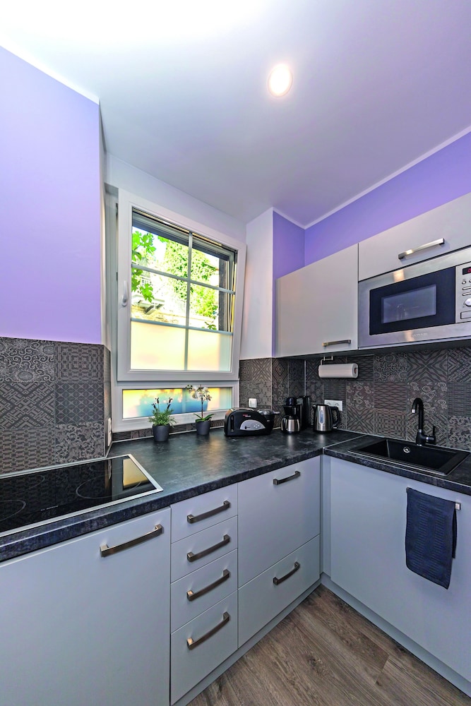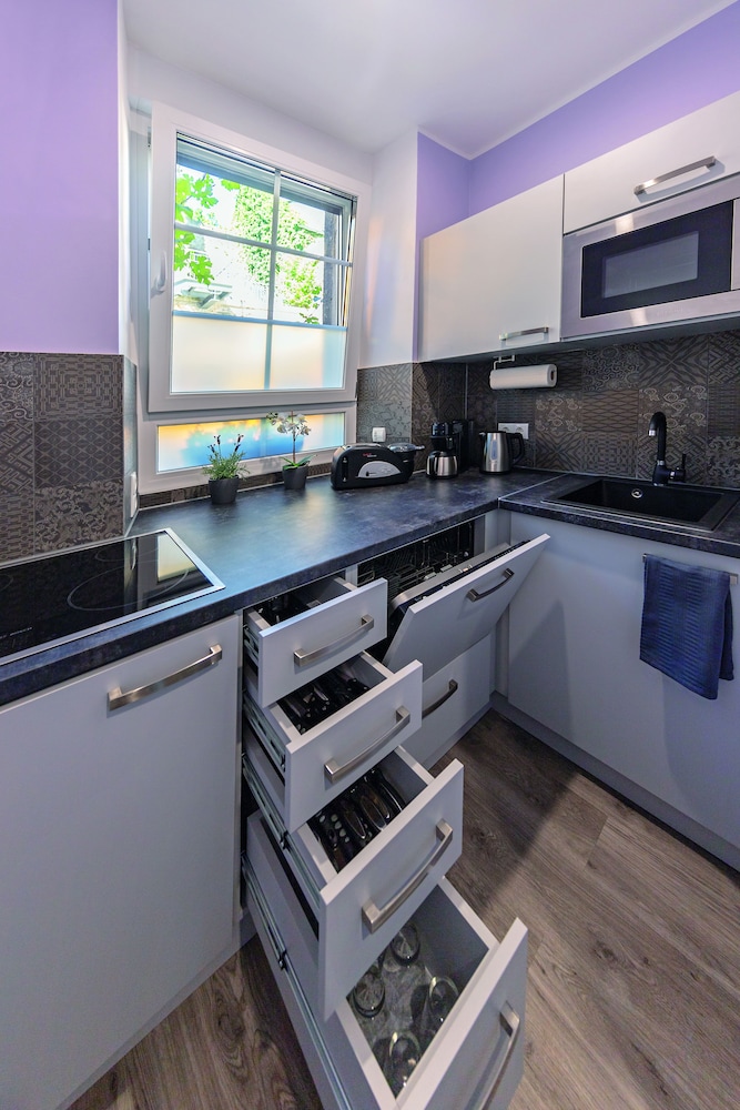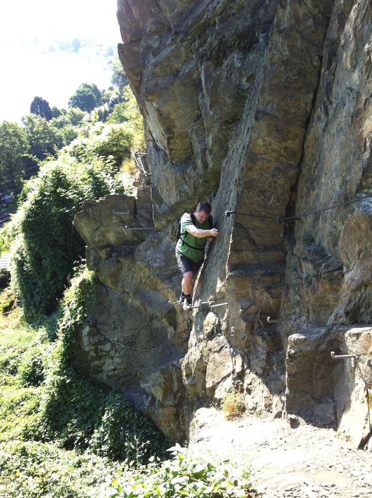 This little apartment was a great jumping off point for our weekend in the Mosel Valley. We were able to park in front of the hotel at night for free with the blue parking ring. The apartment was clean and had everything we needed. Soap in the shower, extra bathmats for the bathroom floor (there is no door on the shower so water splashes around), in addition to a small vacuum (the clean freak in me was thrilled) and a tablet with information about the hotel and area. My only hesitancy is that this apartment had a twin bed and pull out mattress. We booked late and this was what was left and it worked for us, however a real bed would have been better. I also wish, with the price of the apartment, that breakfast at the hotel nextdoor was complimentary. The hosts were all very helpful and pleasant.
