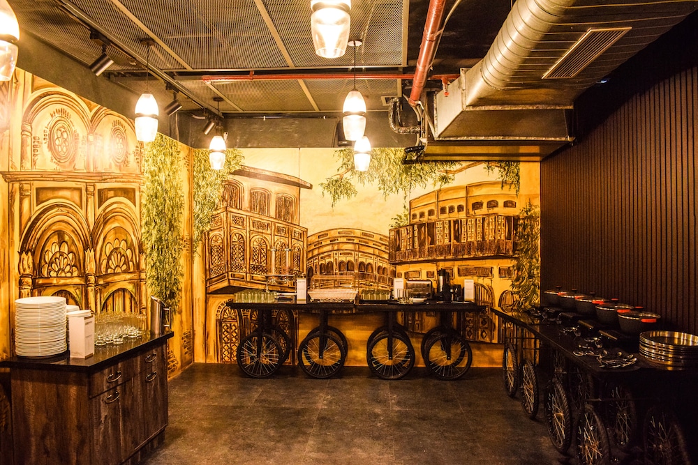 The dining area in the basement was equally atrocious. There was no ventilation, and it was smoky and unbearable to sit there for more than 20 minutes. The food was downright terrible. This place doesn’t even meet basic standards, let alone offer any sort of pleasant dining experience. The kitchen utensils used for the buffet in the common dining area were old, non-stick vessels that were almost completely scratched off, clearly from years of using metal utensils. It’s completely unacceptable that a hotel would provide such worn-out kitchen equipment that poses potential health risks. I cannot fathom how this is deemed acceptable.