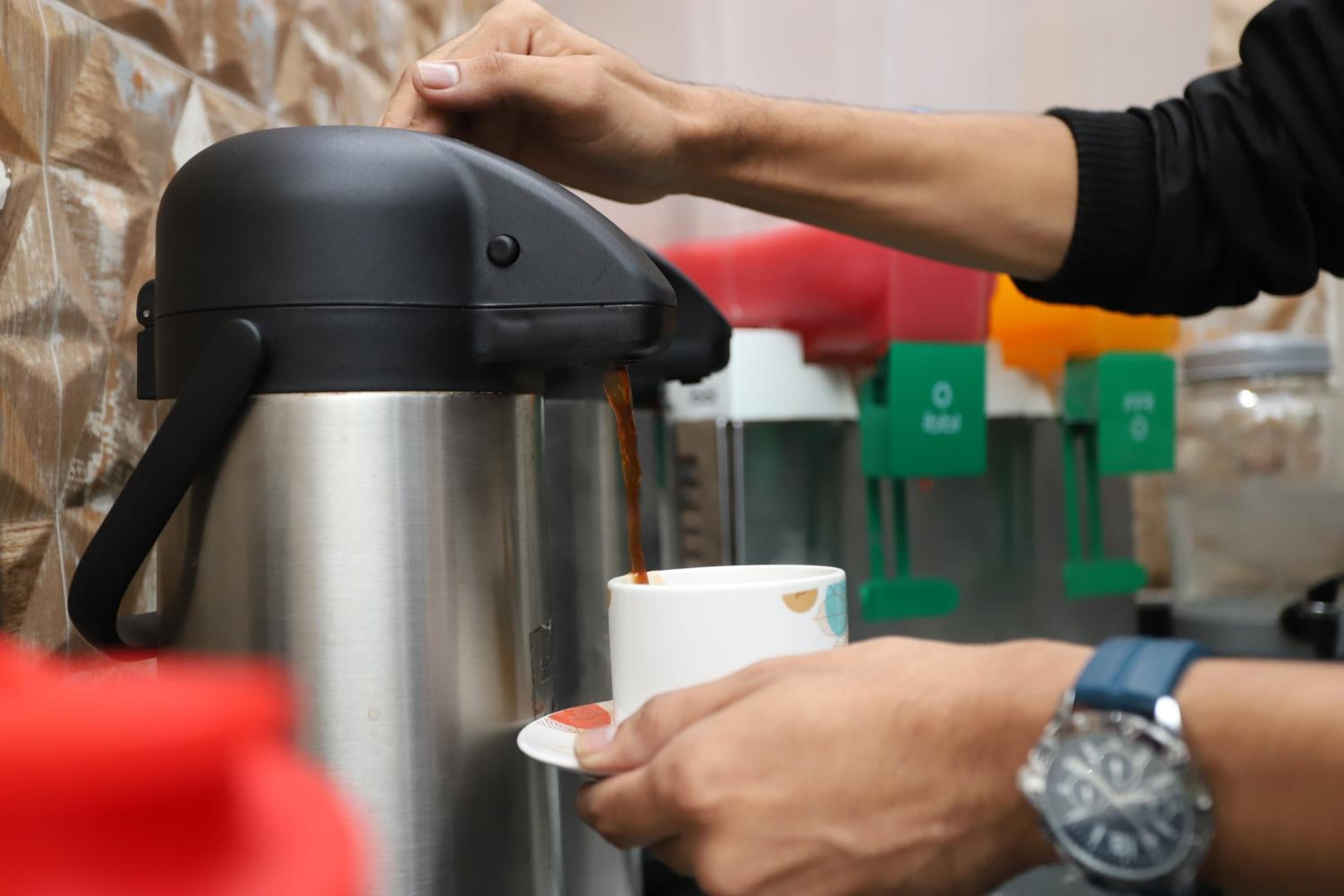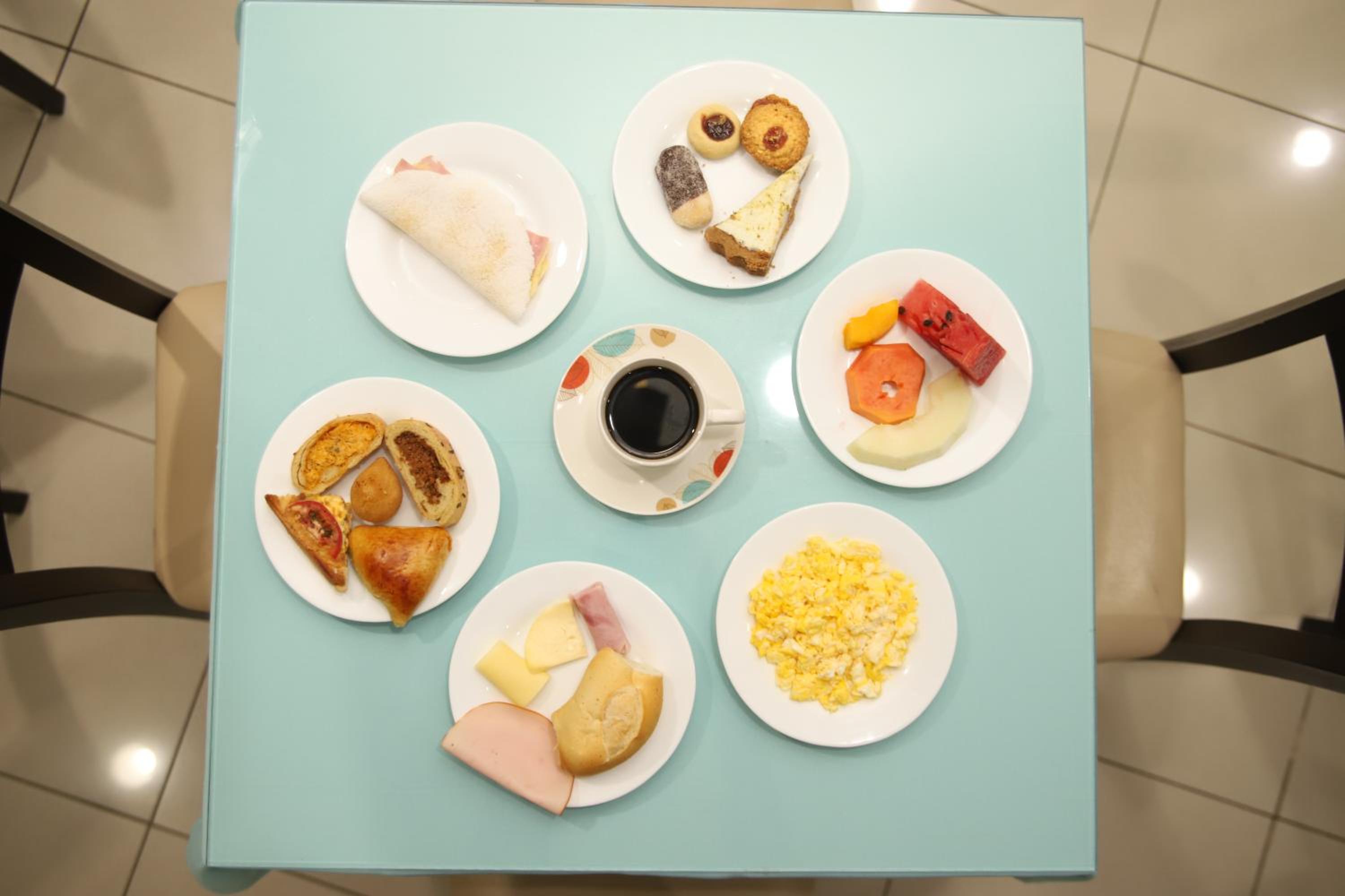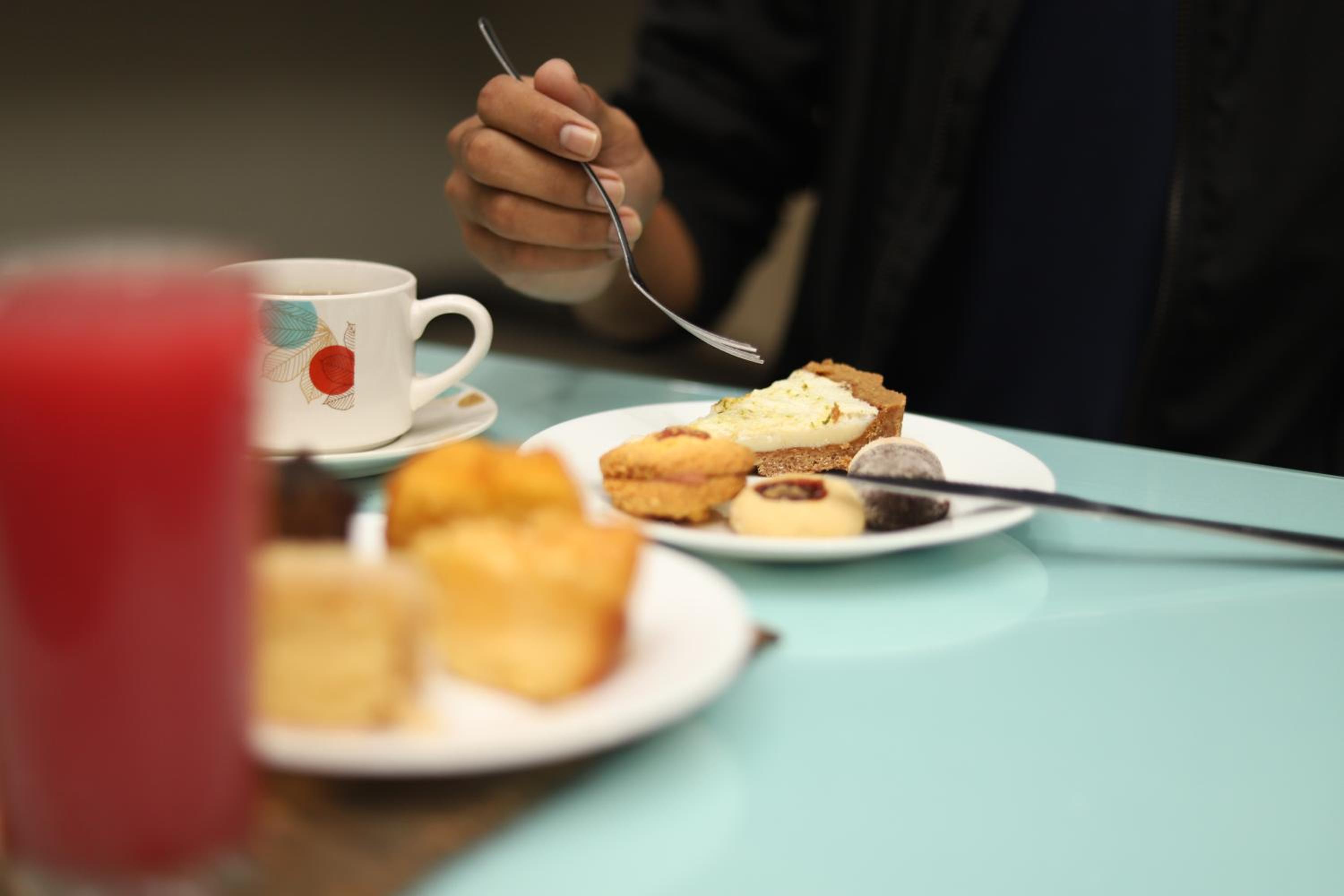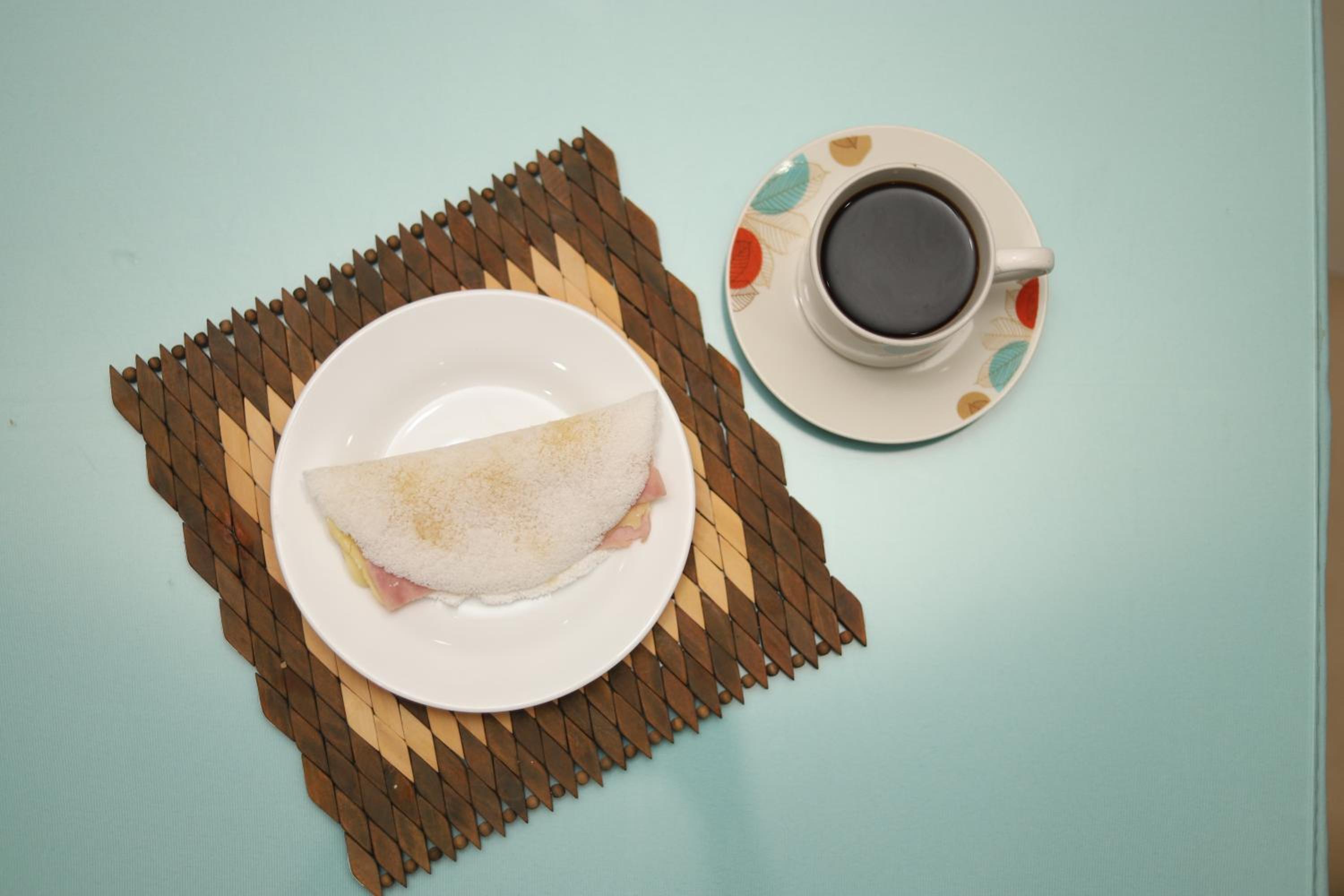 Café da manhã e posição em frente a rua. Televisão não funciona direito.