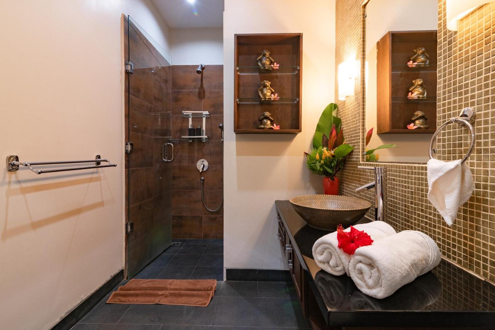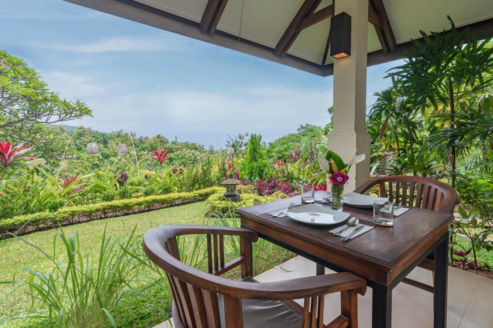 De zwembaden en de prachtige setting in de jungle, in een prachtige tuin. Ontbijt bestel je met een kaart een dag van tevoren. De keuze is wat beperkt, maar voldoende variëteit om goed te ontbijten. Het spreekt mij wel aan dat het ontbijt vers is en dat er niks weggegooid wordt nadien, zoals bij veel andere verblijven.