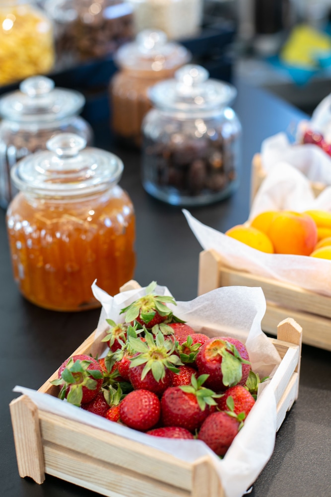 Individually-wrapped food options are available for breakfast