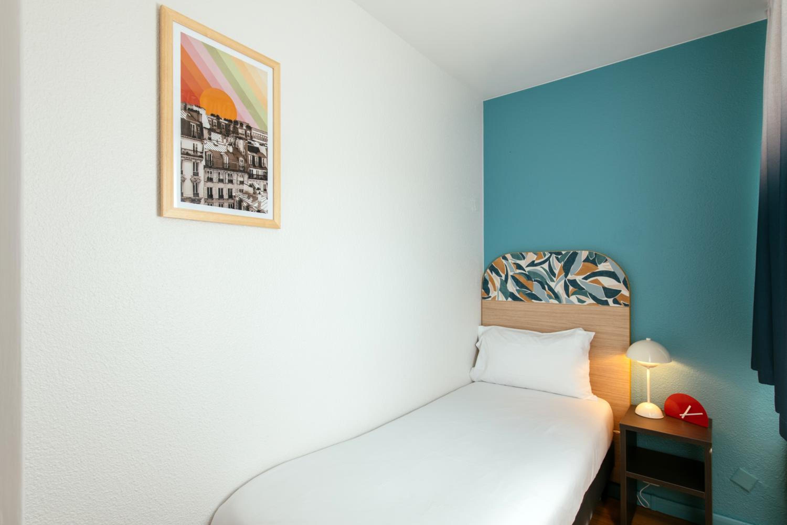 La chambre était très jolie. Ça change des chambres toutes blanches, il y avait de la couleur ça fait du bien on ne se croyait pas vraiment dans un hôtel c'était sympa. On avait une petite vue sur la ville qui était vraiment sympa et l'hôtel est vraiment bien placé on est à côté de tout : zenith, parc de la villette, parking..