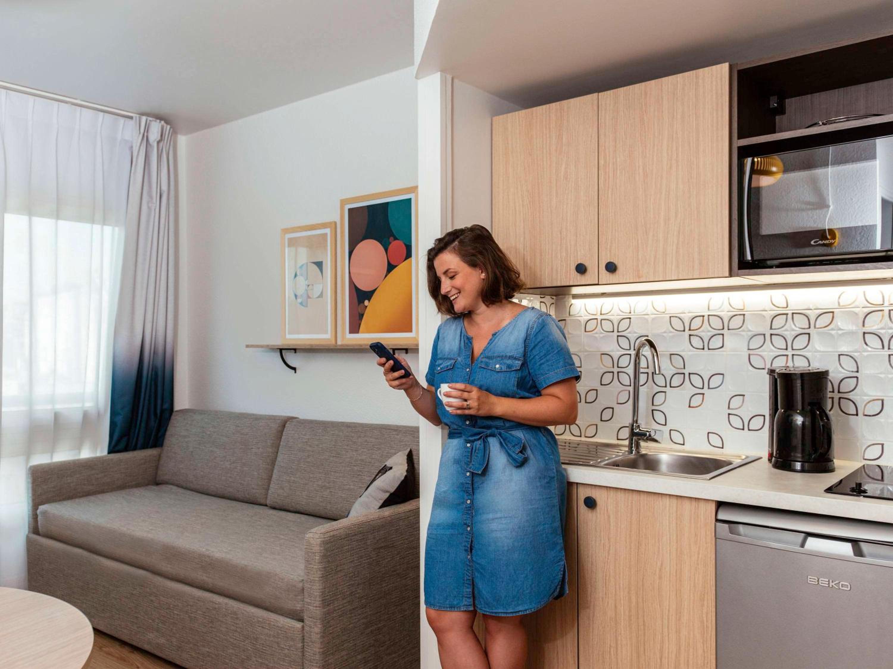 Our furnished apartments feature fully equipped kitchens, perfect for guests looking for a comfortable and convenient stay. Start your day right with a delicious buffet breakfast served every morning.