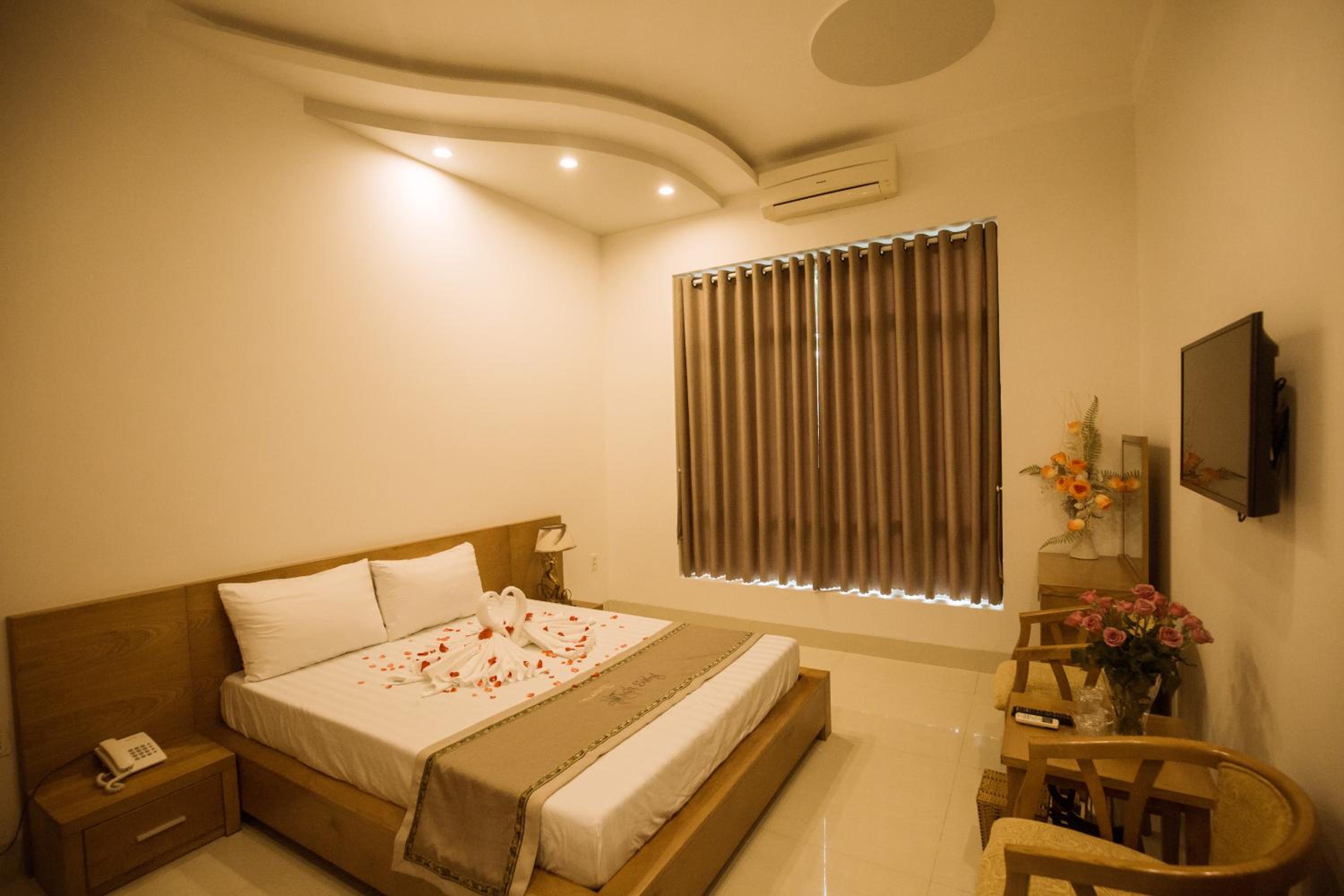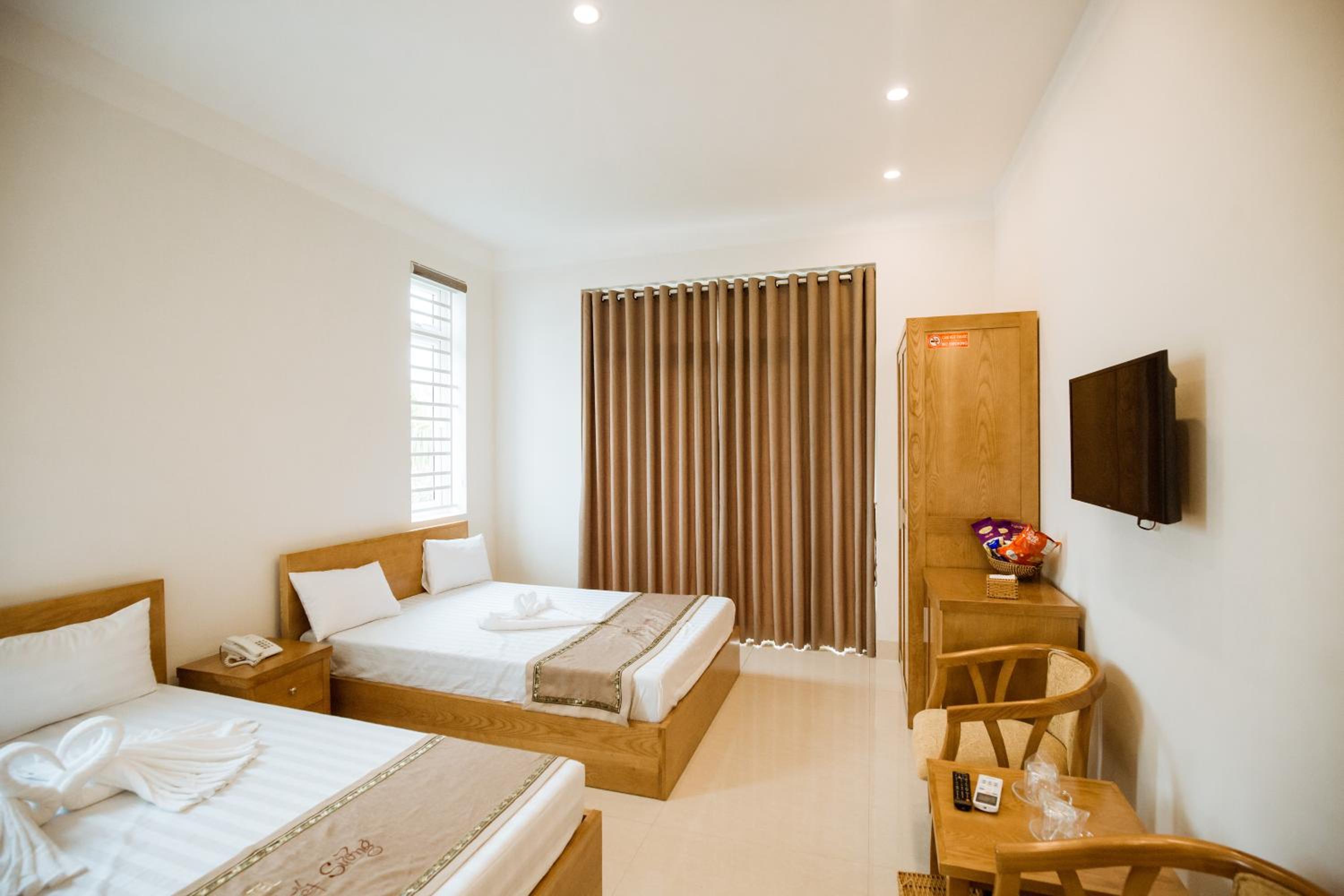 Indulge in a relaxing stay at Tuyet Suong Villa Hotel in Quang Ngai. Our 3-star hotel offers comfortable rooms with modern amenities including air conditioning, flat-screen TVs, and private bathrooms. Some rooms even boast balconies with city views for a touch of luxury.