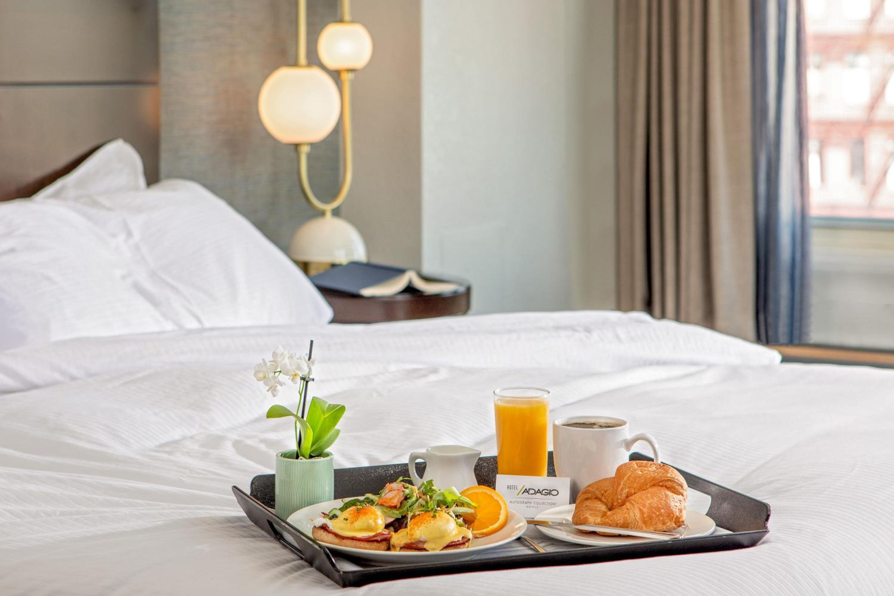 Indulge in luxury with an iPod docking station, flat-screen TV, and breathtaking views of Union Square or the city skyline in every room at Hotel Adagio.
