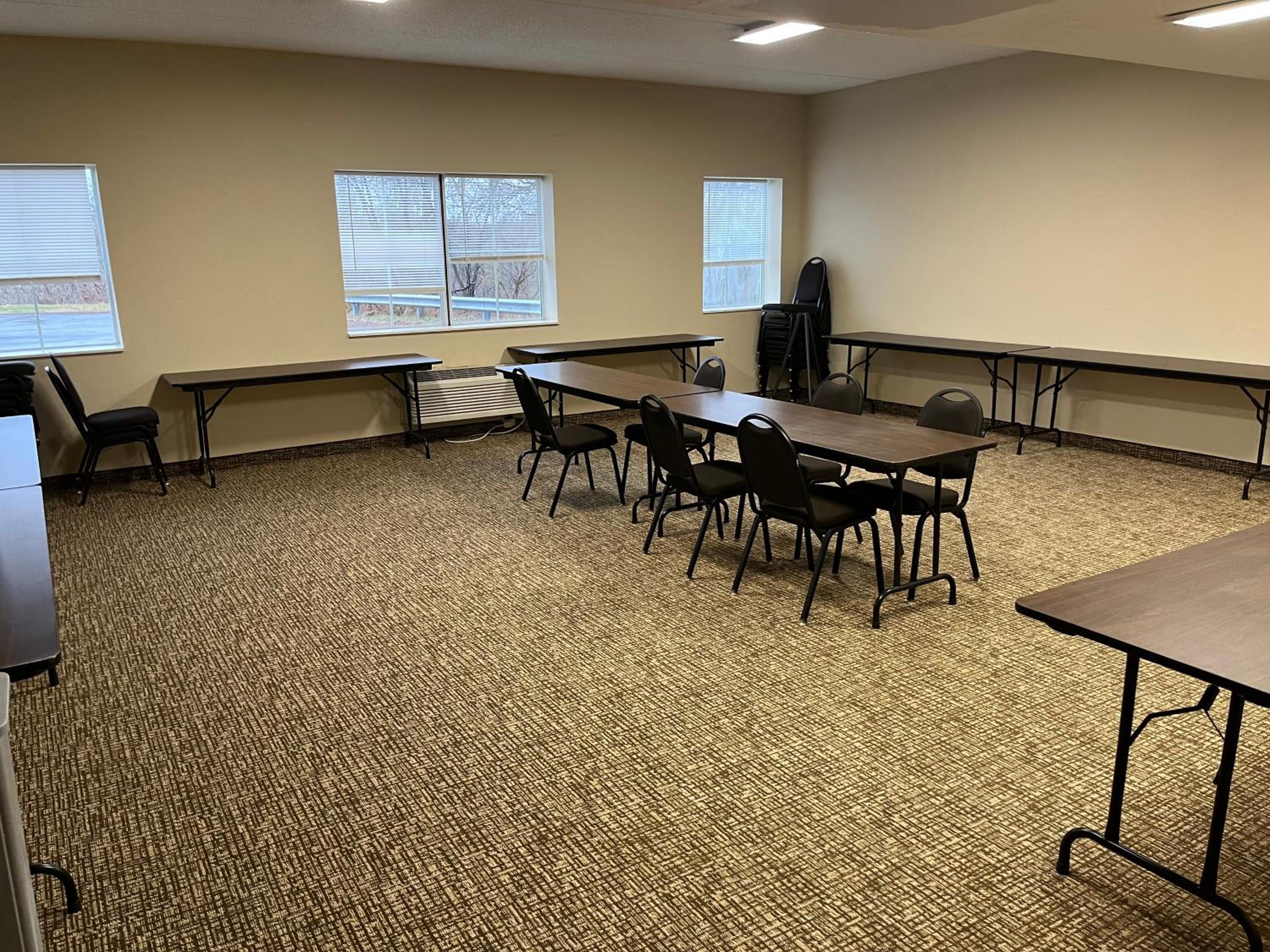 The room's carpet is in good condition.