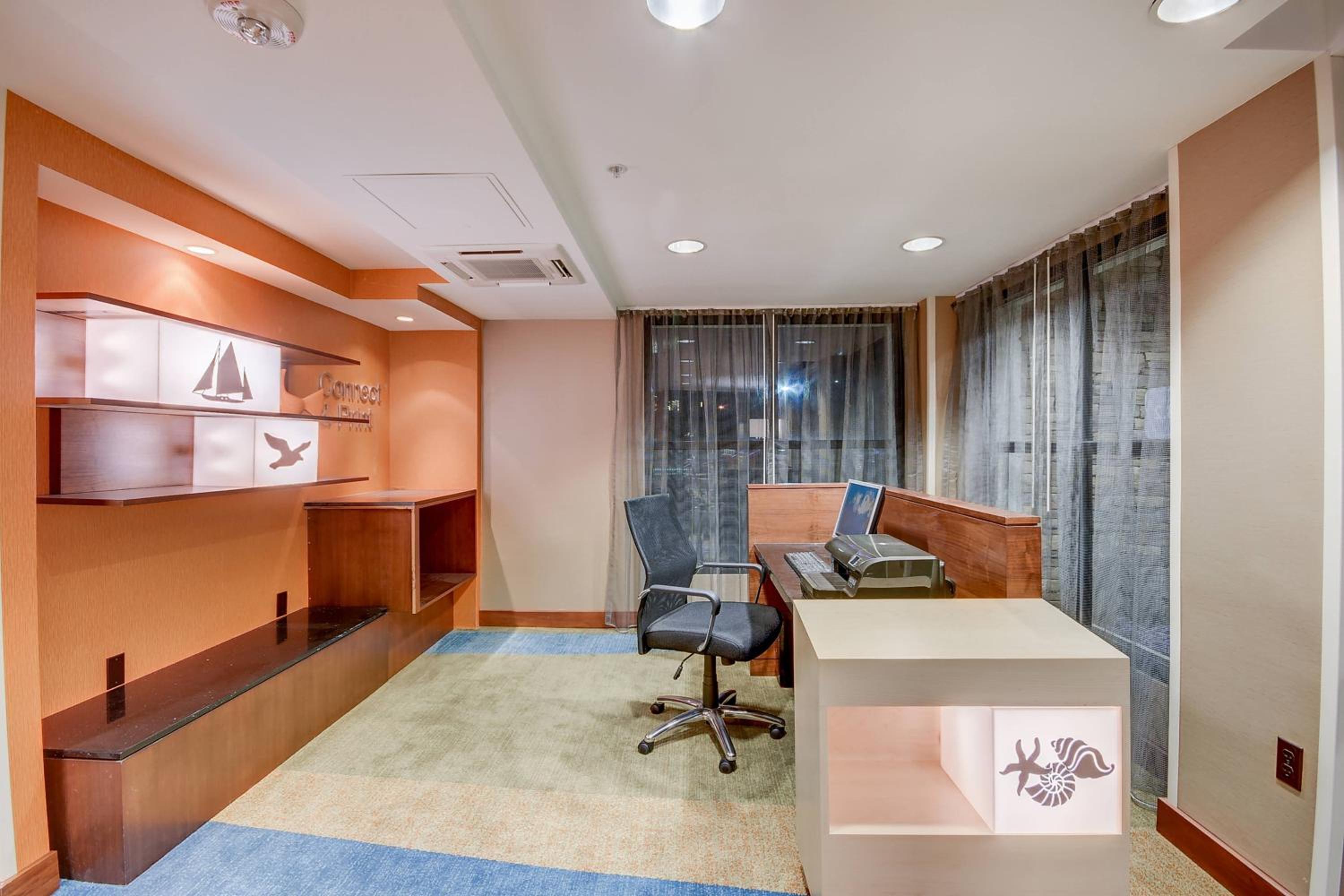 The guest rooms at Fairfield Inn feature cable TV with HBO, free Wi-Fi, desks, ironing facilities, hairdryers, and coffee makers, ensuring a comfortable stay for every guest.