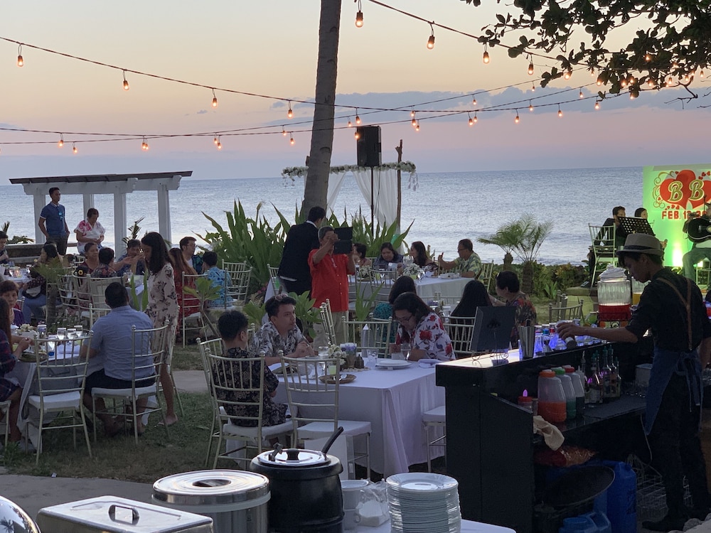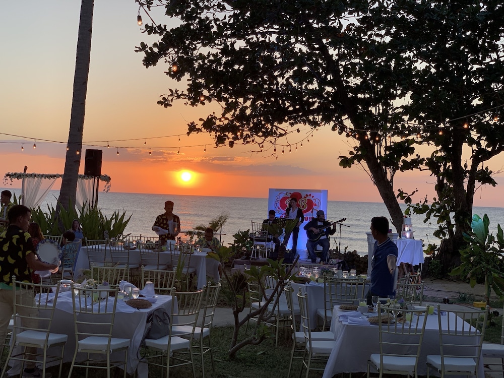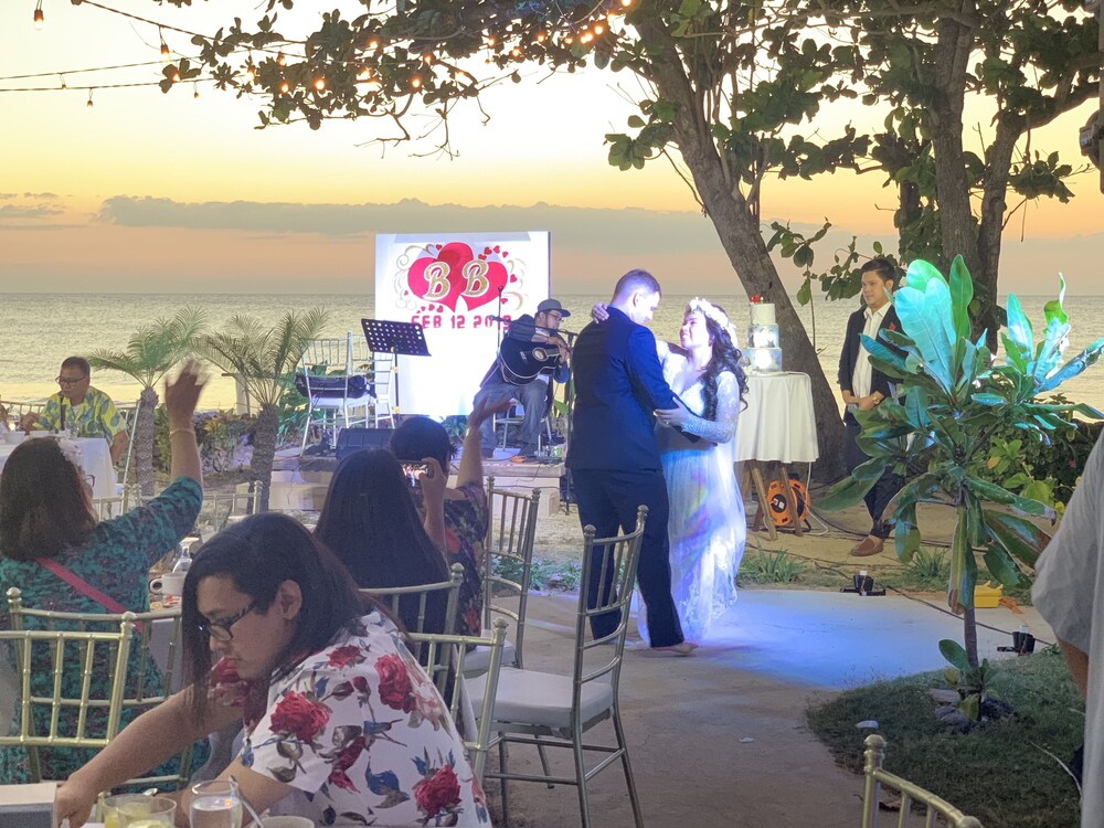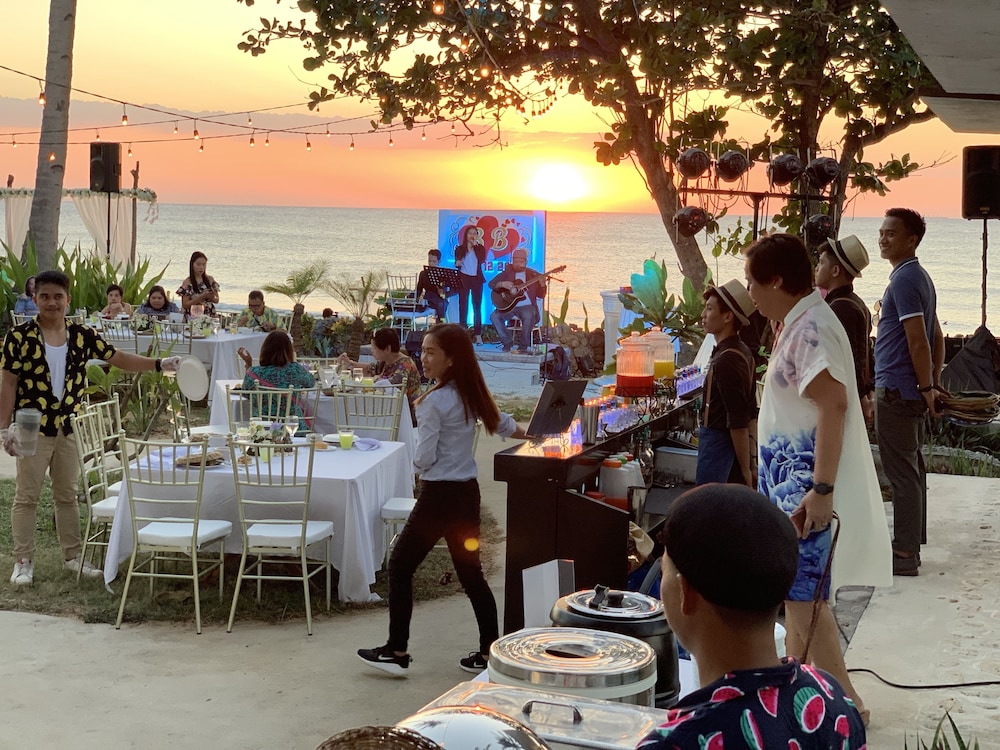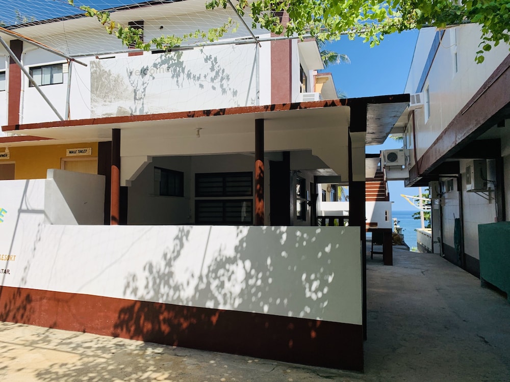 The place has a nice location in a quiet beach. Staff is very friendly. The food in their restaurant is pretty good even if it is far from other restaurants. However, the resort needs a little upgrade. When we entered our room, there was a foul odor coming from the bathroom due to a clogged drainage on the bathroom sink. It needed to be unclogged. The maintenance was quick to do it when we told them. Then there was a water drip on the ceiling and when we woke up there was quite a puddle on the floor which can become a trip hazard because the floor was slick. Hopefully, they can fix that issue quickly, too. We did enjoy the cocktail/ band night last Saturday evening. The kitchen facilities and supplies on the ground floor are adequate where the rest of my group stayed so we were able to cook. That was a good bonus. Overall, we enjoyed our stay.
