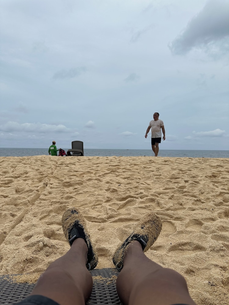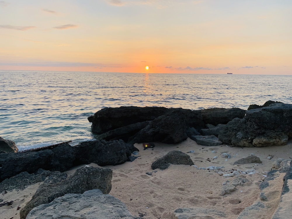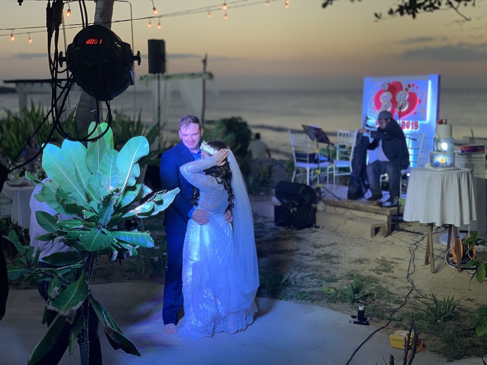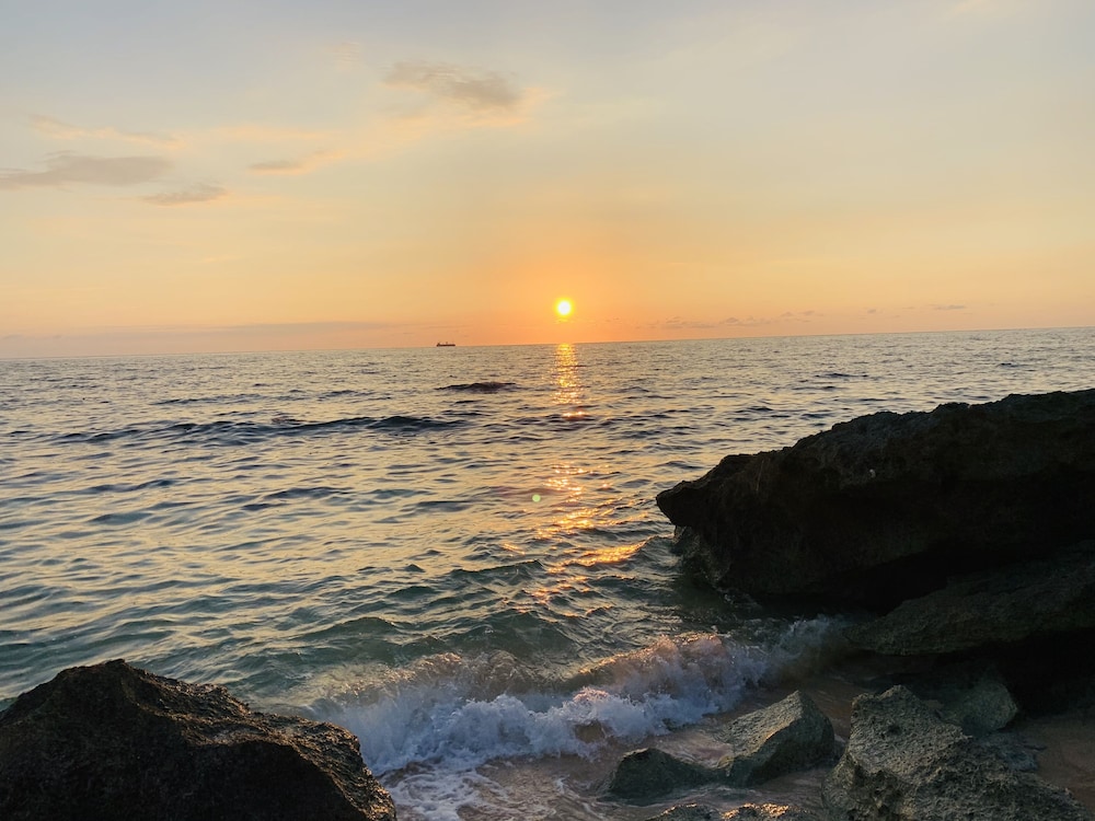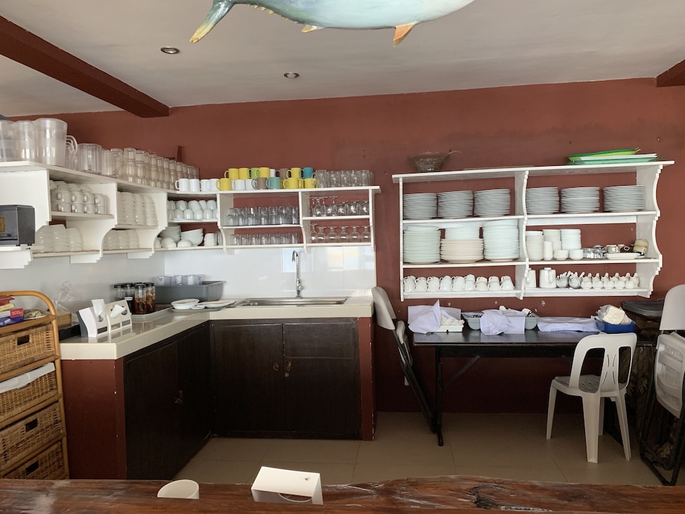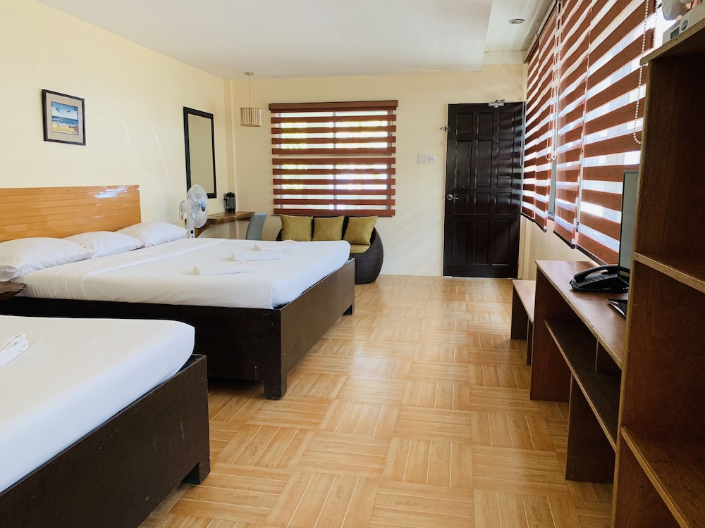 The place has a nice location in a quiet beach. Staff is very friendly. The food in their restaurant is pretty good even if it is far from other restaurants. However, the resort needs a little upgrade. When we entered our room, there was a foul odor coming from the bathroom due to a clogged drainage on the bathroom sink. It needed to be unclogged. The maintenance was quick to do it when we told them. Then there was a water drip on the ceiling and when we woke up there was quite a puddle on the floor which can become a trip hazard because the floor was slick. Hopefully, they can fix that issue quickly, too. We did enjoy the cocktail/ band night last Saturday evening. The kitchen facilities and supplies on the ground floor are adequate where the rest of my group stayed so we were able to cook. That was a good bonus. Overall, we enjoyed our stay.