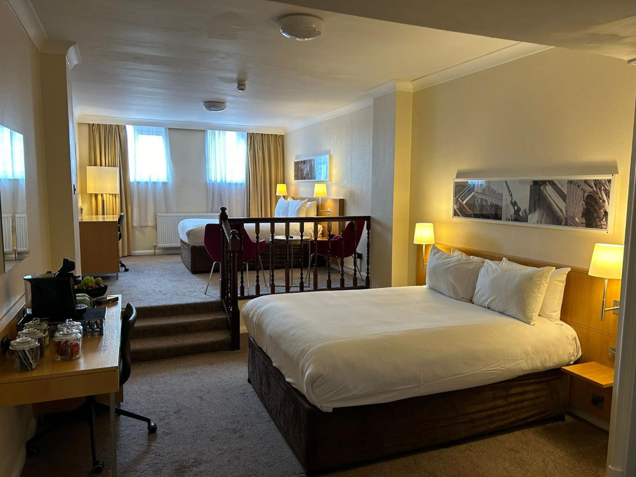 The hotel features well-appointed bedrooms, each with a private bathroom. Some rooms offer additional amenities such as seating areas and workspaces, ensuring a comfortable stay for guests. All rooms are equipped with a TV and tea/coffee making facilities.