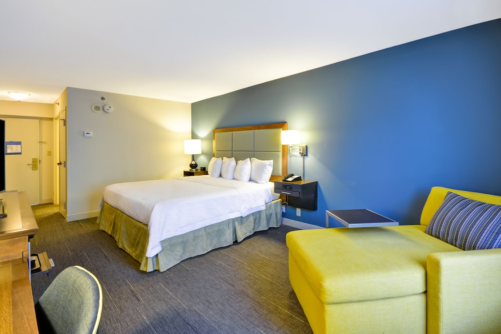 Had broken lamps, bathroom fixtures, looked quite worn. Food and as mediocre to bad! Really noisy hotel and felt I was staying in a one star accommodation. Queen beds were not queens and no pillow tops!!!! Worst Hampton I’ve ever stayed in will not stay in one again due to the terrible experience.