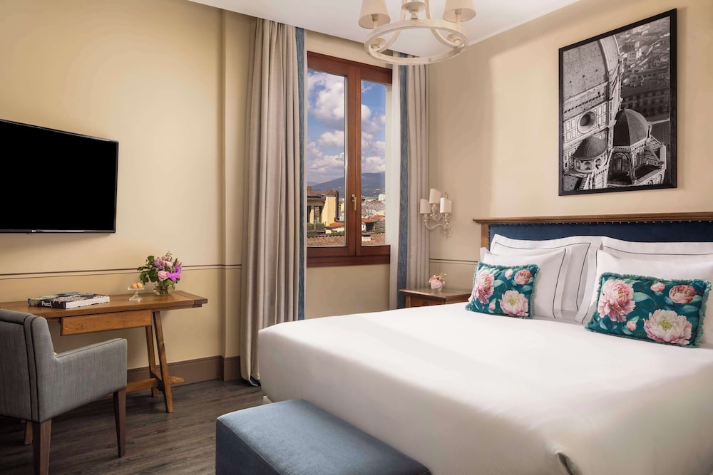 What absolutely gorgeous hotel. From the moment we arrived till the moment we left it was wonderful. The staff were amazing and the room was beautiful. The view from the roof top bar is a must for anyone visiting this stunning city. Five star in every aspect and perfectly located for anyone wanting to explore Florence and all it has to offer.