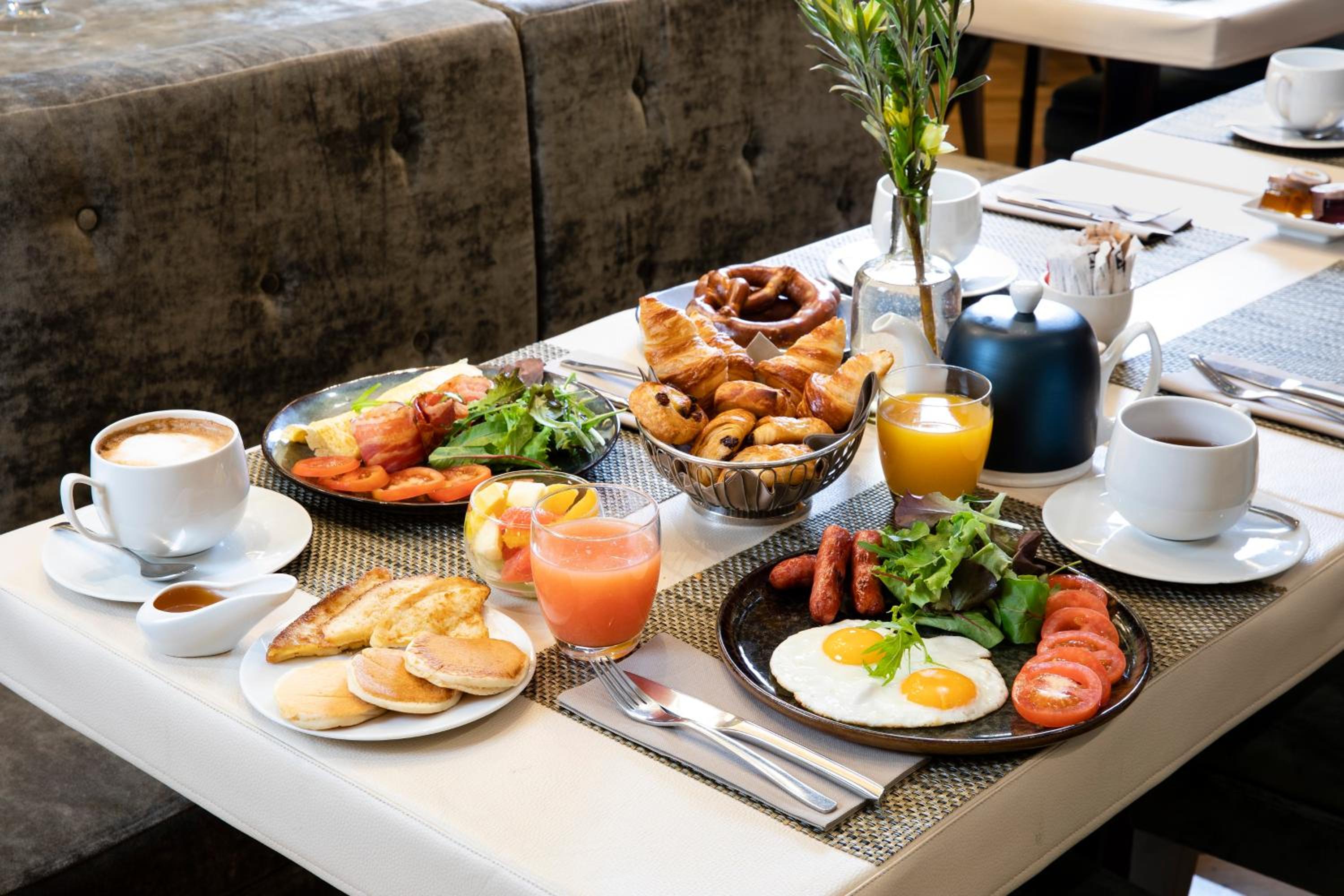 Savor delectable cuisine at "La Cuisine de l'E7" restaurant, known for its organic and seasonal menus. Start your day with an American buffet breakfast and unwind at the hotel bar with custom cocktails crafted to your liking.