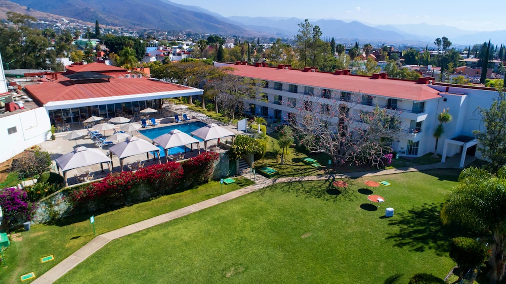 Indulge in the outdoor pool, terrace, and garden for a serene getaway experience at Hotel Misión Oaxaca.