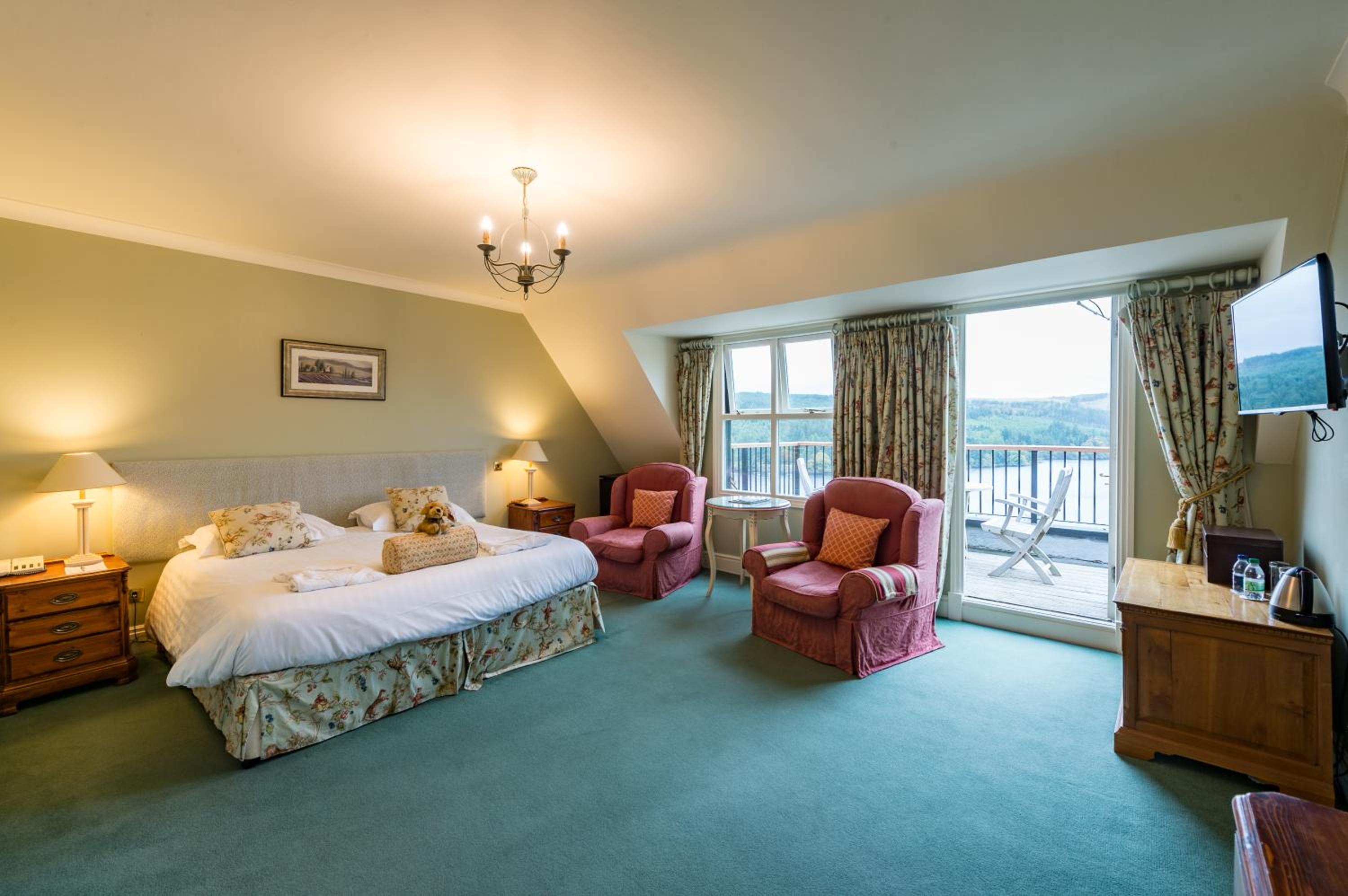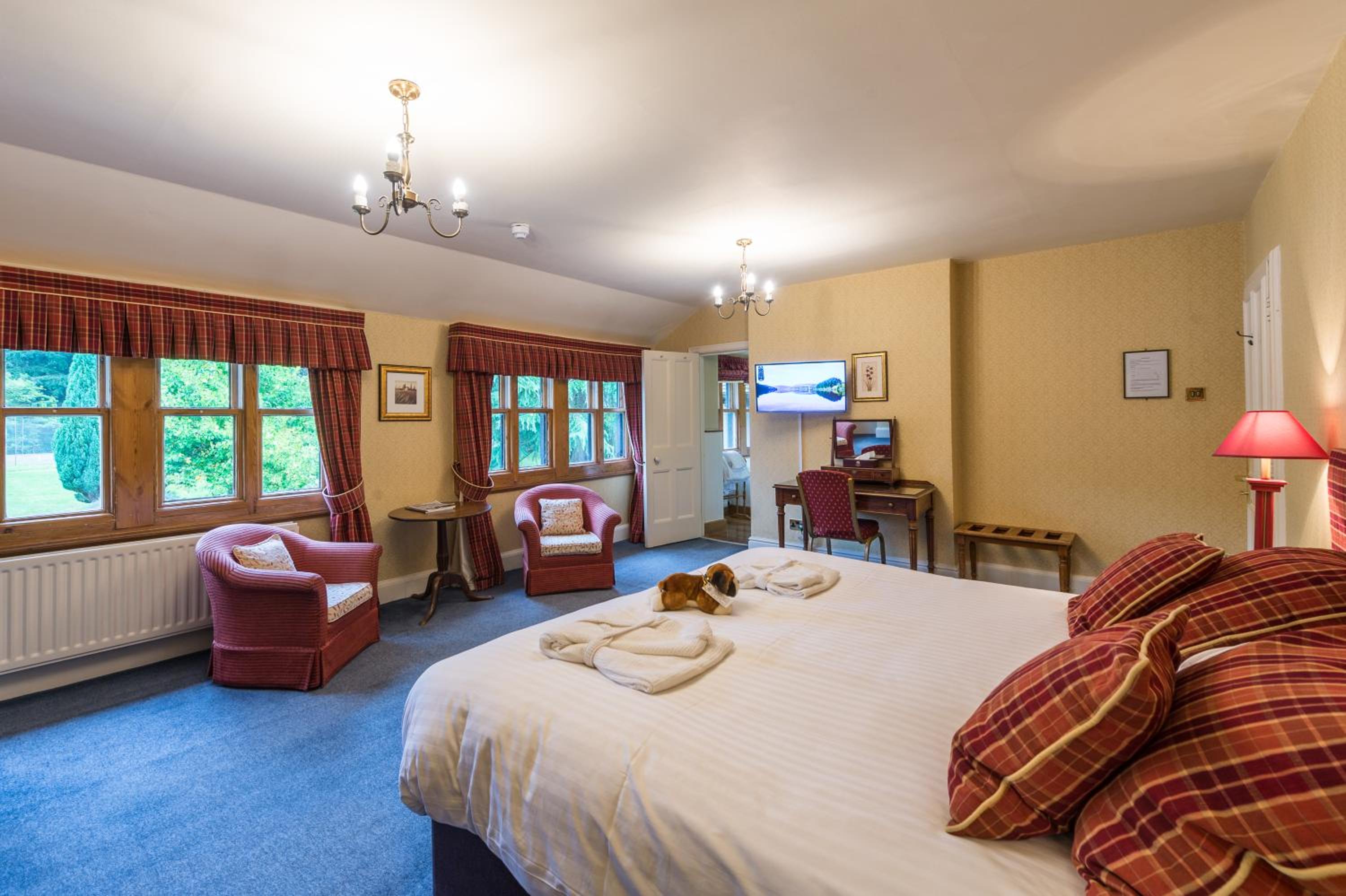 Lake Vyrnwy Hotel & Spa offers elegant rooms with modern amenities and picturesque views of Lake Efyrnwy. Each room is equipped with a flat-screen TV, work desk, and a luxurious bathroom with complimentary toiletries and robes for your comfort.