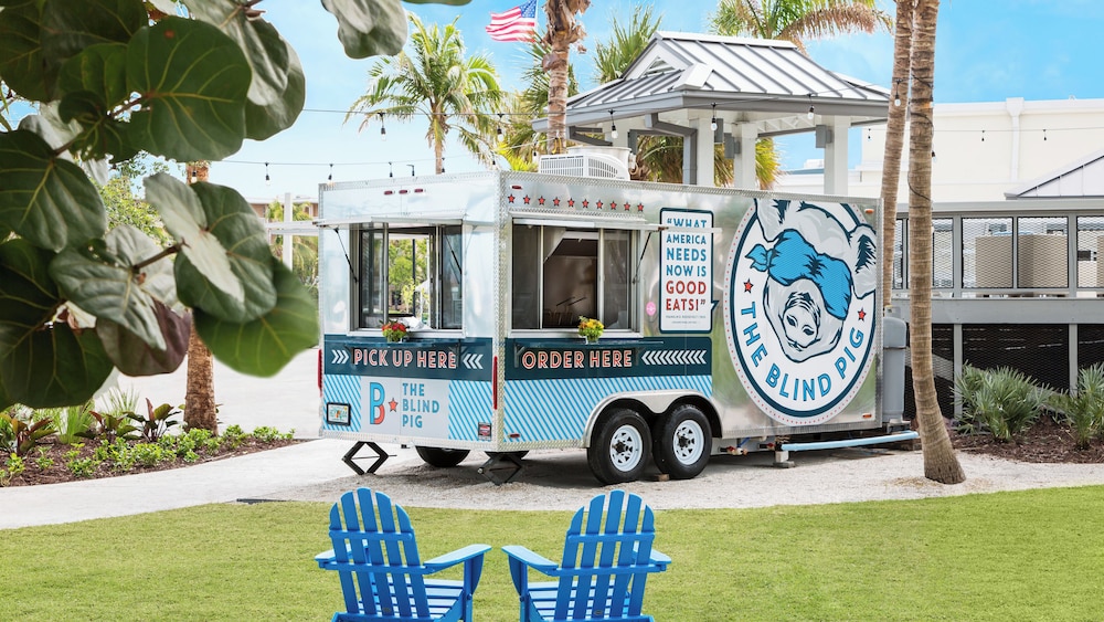 Indulge in delectable cuisines at various dining establishments, from The Blind Pig Food Truck to a cozy coffee shop and lively bar/lounge.