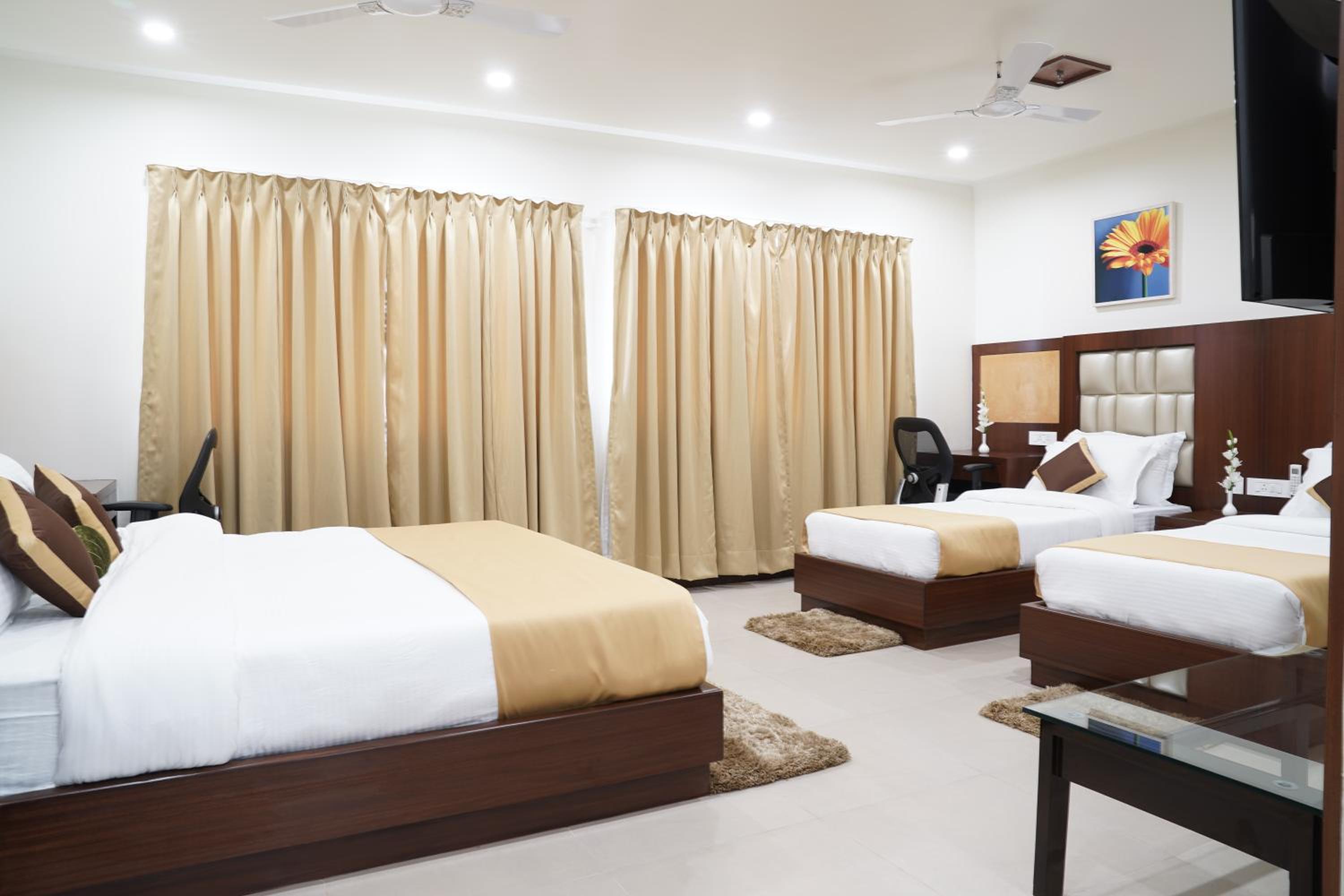 The behavior of the management is extremely bad. We have a train to catch at 7.28am we tried to check out on 7.00am. The management kept us waiting and started arguing for booking room from expedia. And for next time they told us to do bookkng from other site. In bathroom some taps were broken. And the room is not much clean and given with dirty small blanket not enough for two people.