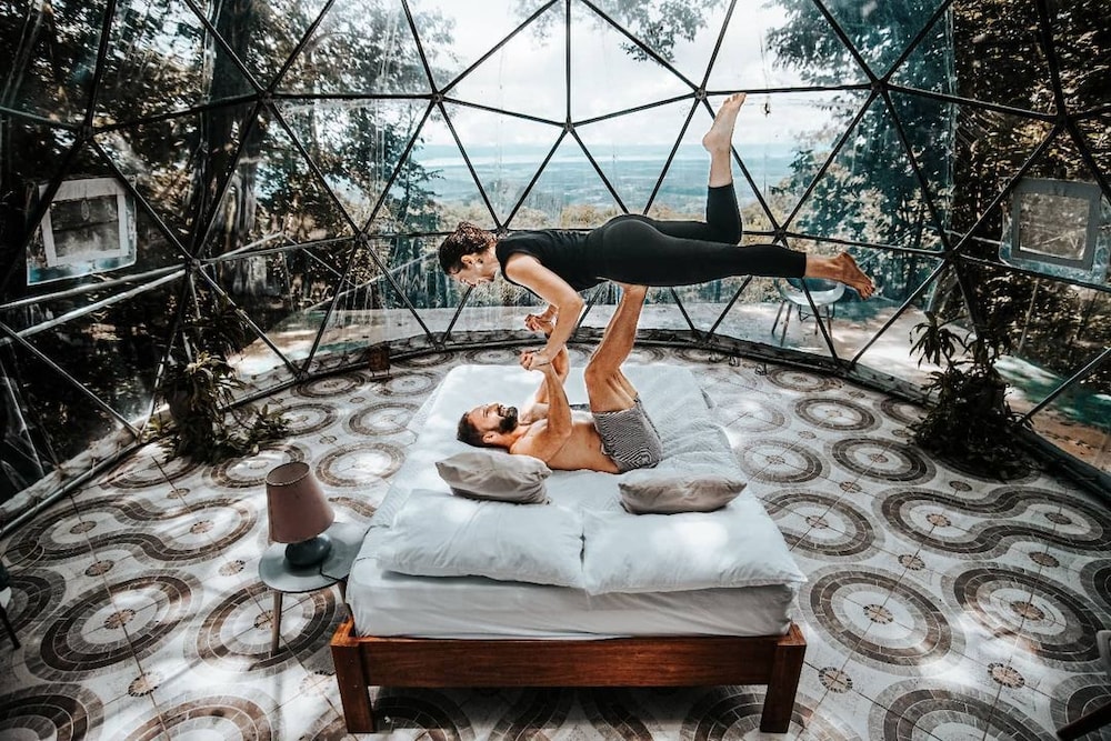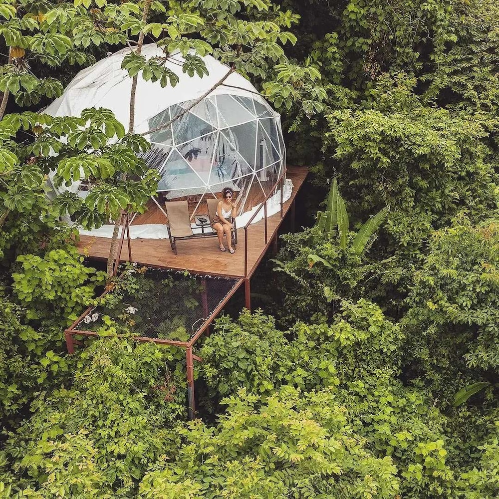 I stayed 2 nights in one of the "cabins" (my unit was not actually detached so a little odd to call it a cabin but whatever), not one of the domes. It was spacious (travelled solo and was in a room with apace for 5) and the views were amazing from the room and the property. I saw a Toucan fly by my first evening and the night sounds of the surrounding jungle were fabulous.