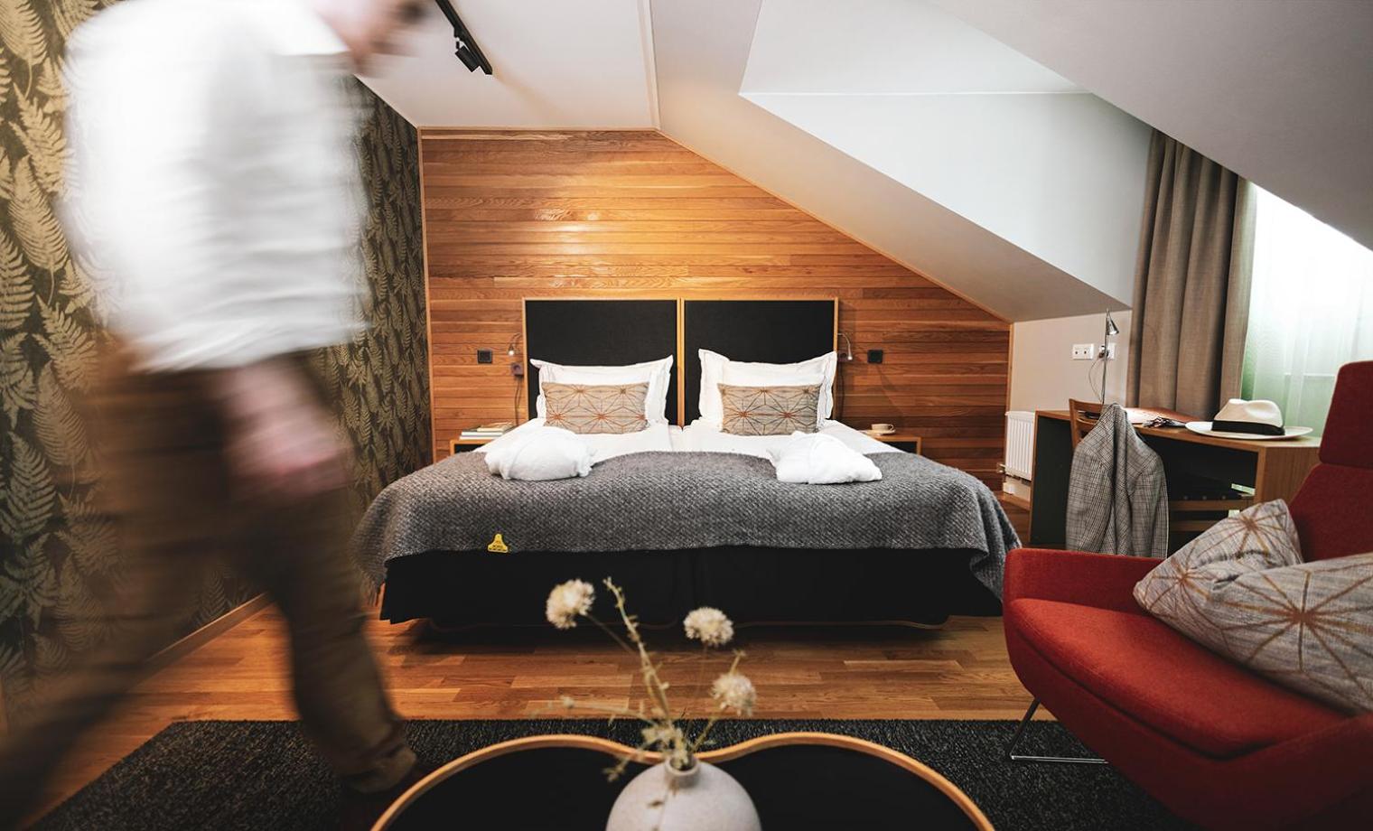 The check-in experience felt rushed and not very personal. The beds were a little stiff, but no worse than expected. The floor heating in the bathroom was tricky to turn on. The shower cubicle was a little rough and needs repair.
