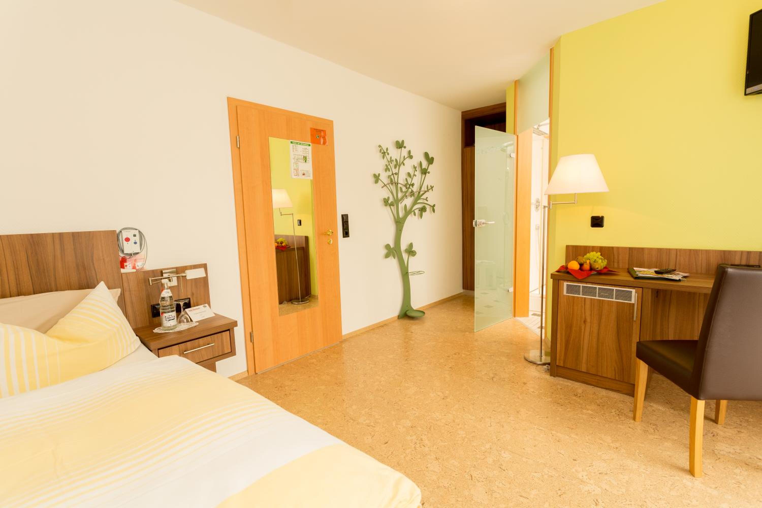 Das Zimmer war sehr ruhig. Das Bett sehr bequem. Zimmer vor kurzem renoviert. Mit Balkon, überdacht. Hübscher Garten. Im hauseigenen Hallenbad fühlte ich sehr wohl. Lange Öffnungszeit (7-20h).