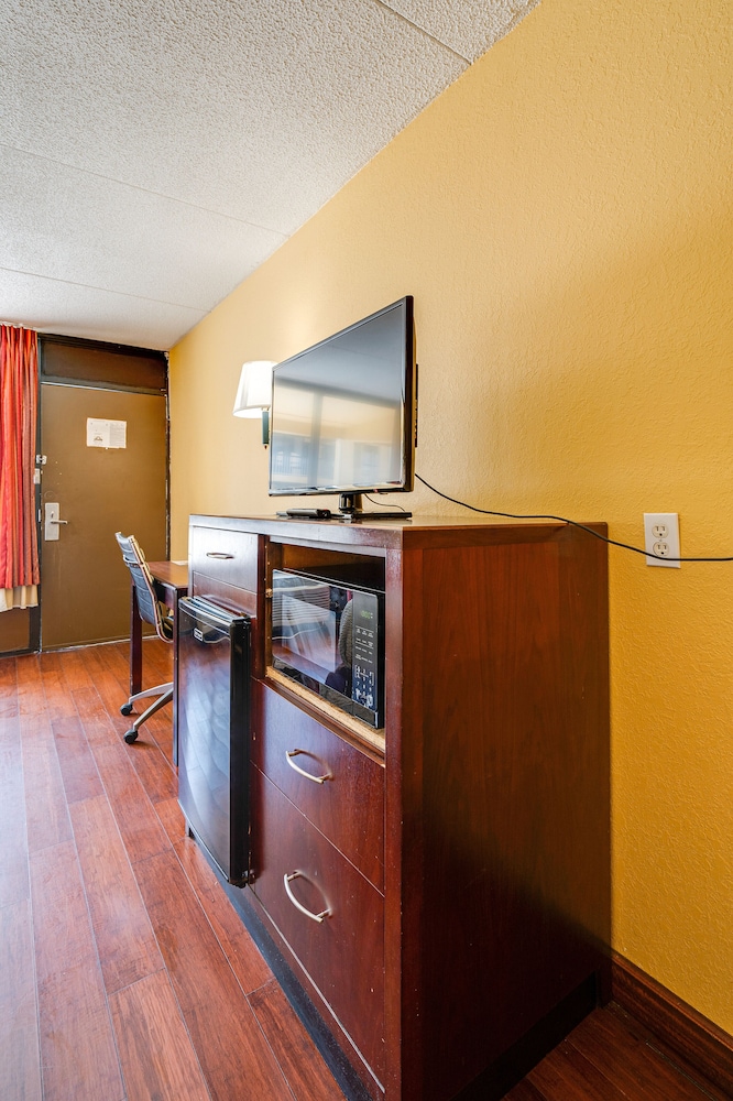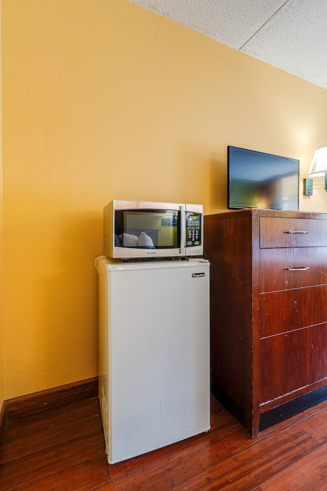 I needed a last minute place to stay. Don't let the star rating fool you. The room was clean and comfortable. Front desk was accommodating to a hidden disability. Slept good. Double decker fridge and newish microwave.