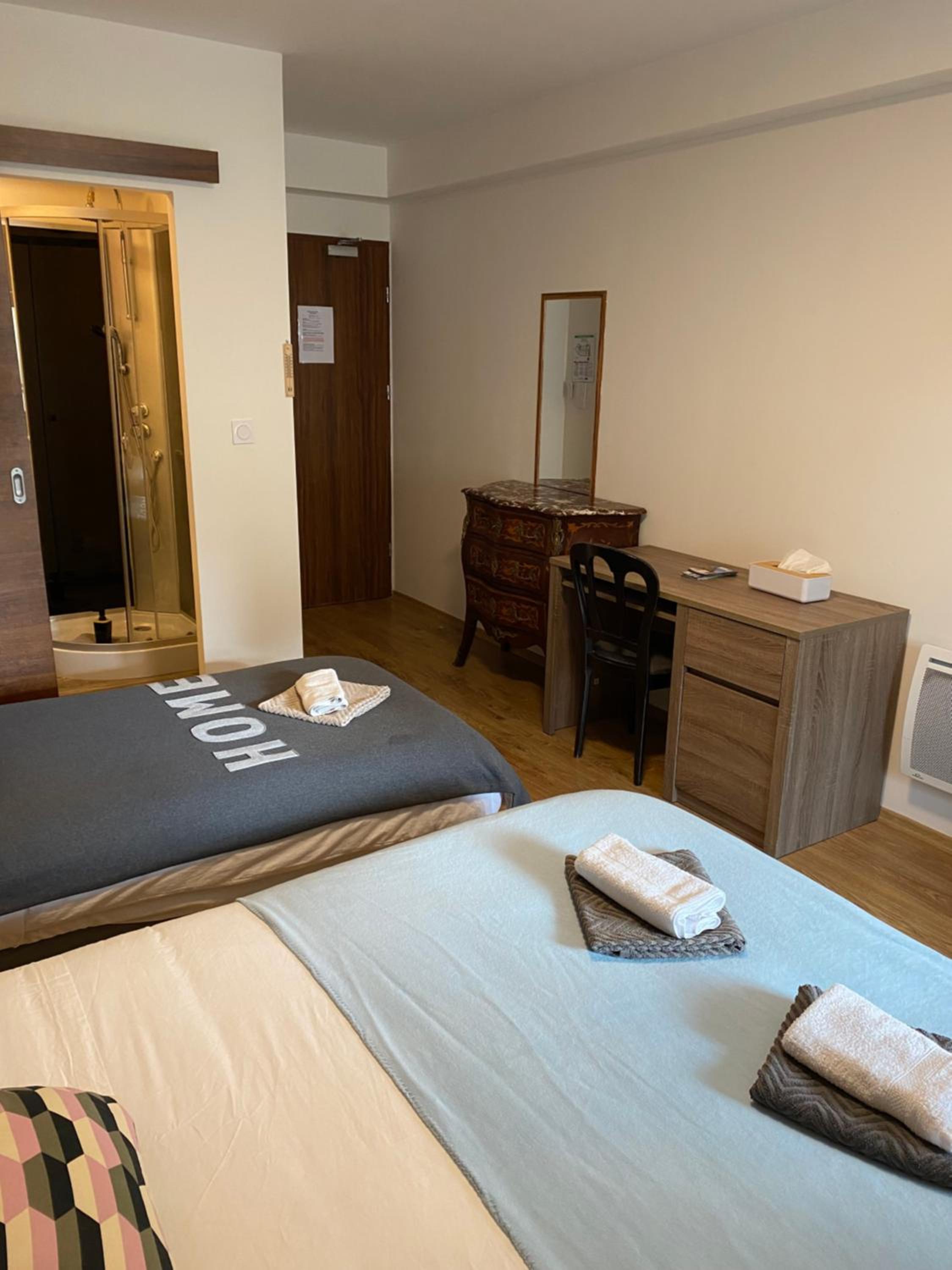 J’ai réservé cet hôtel qui était le plus proche car fatigué de la route, j’ai l’habitude des hôtels mais là-bas le rapport qualité prix n’est pas bon, les chambres sont trop chères pour un hôtel qui parait vieillot avec de la moquette à l’ancienne, la douche était minuscule, aucun équipement comme sèche cheveux ou petit frigo, uniquement du savon pour les cheveux et le corps, une fin de rouleau de papier toilette à dispos, il faisait froid dans la chambre et le chauffage de la douche ne fonctionnait pas, l’état de la chambre et des murs à revoir, c’est beaucoup de détails qui s’accumulent, en bref il ne faut pas y aller pour le confort. J’ai pas pris le petit déjeuner à 12€ qui est assez excessif pour les produits proposés, on m’a quand même offert un café le seul point positif c’est l’amabilité du personnel