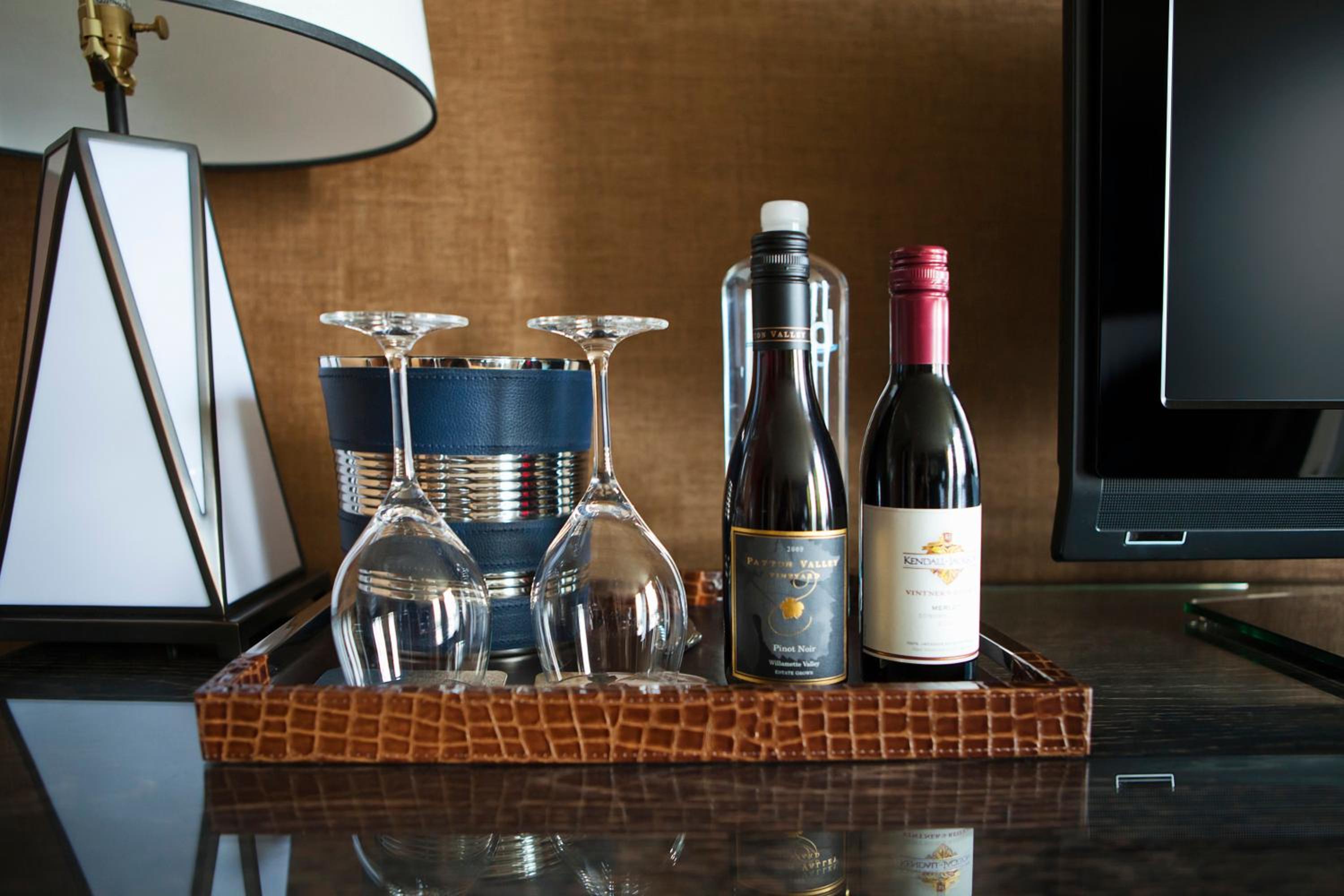 Luxurious Accommodations: The RiverPlace Hotel offers modern rooms with large windows, plush bathrobes, and premium amenities for a comfortable stay.
