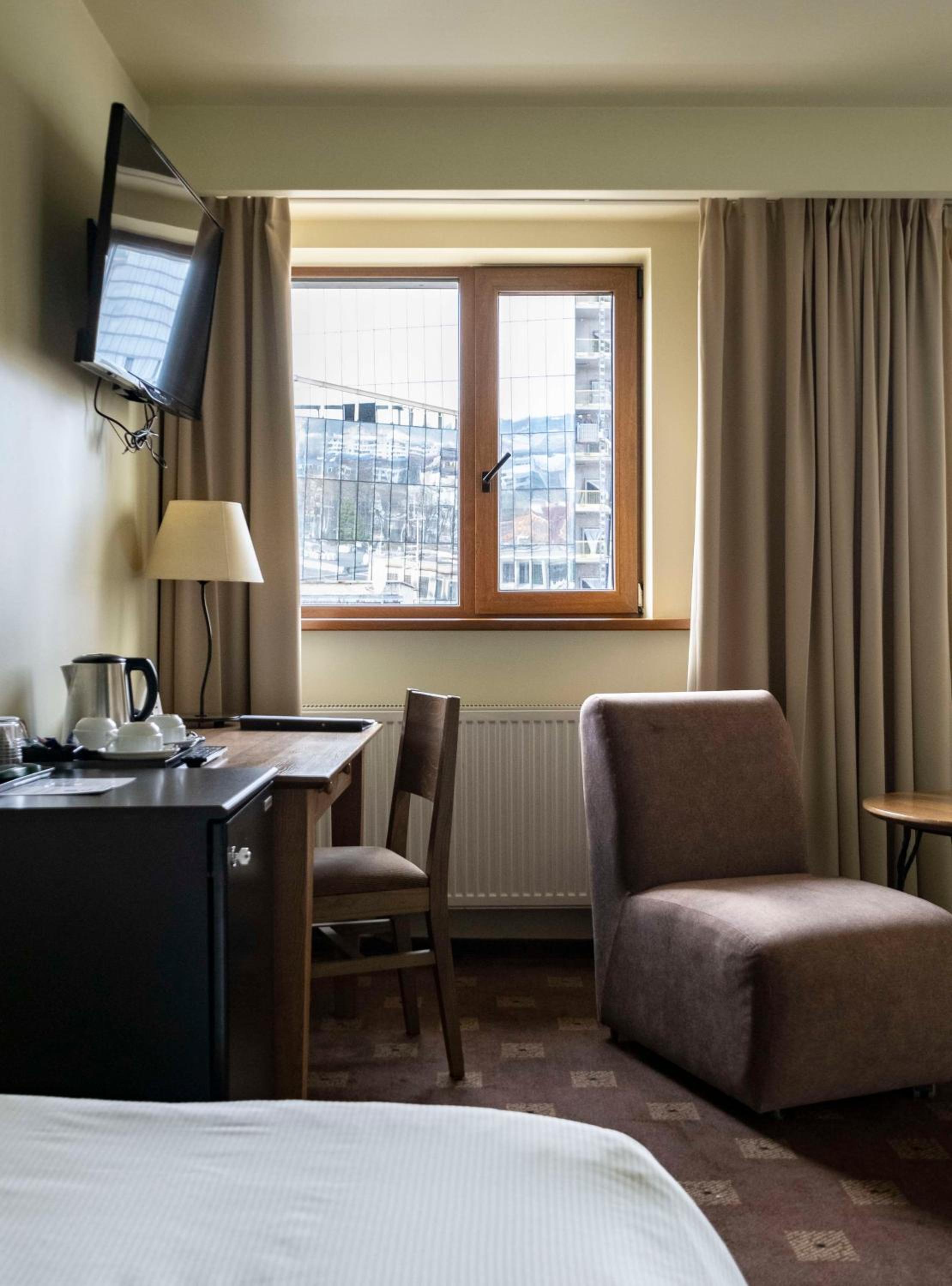 Очень удобное расположение, близко к центру, 50 метров до торгового центра, нормальный вид из окна, хороший и отзывчивый персонал. Номер был чистый и комфортный, удобные кровати. Завтрак был очень вкусным и разнообразным. В номере есть все удобства - фен, чайник и прочее.
